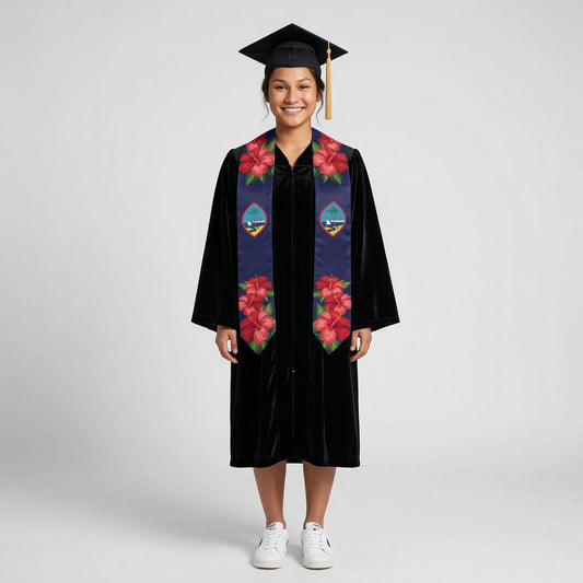 Guam Red Hibiscus Blue Graduation Stole Sash