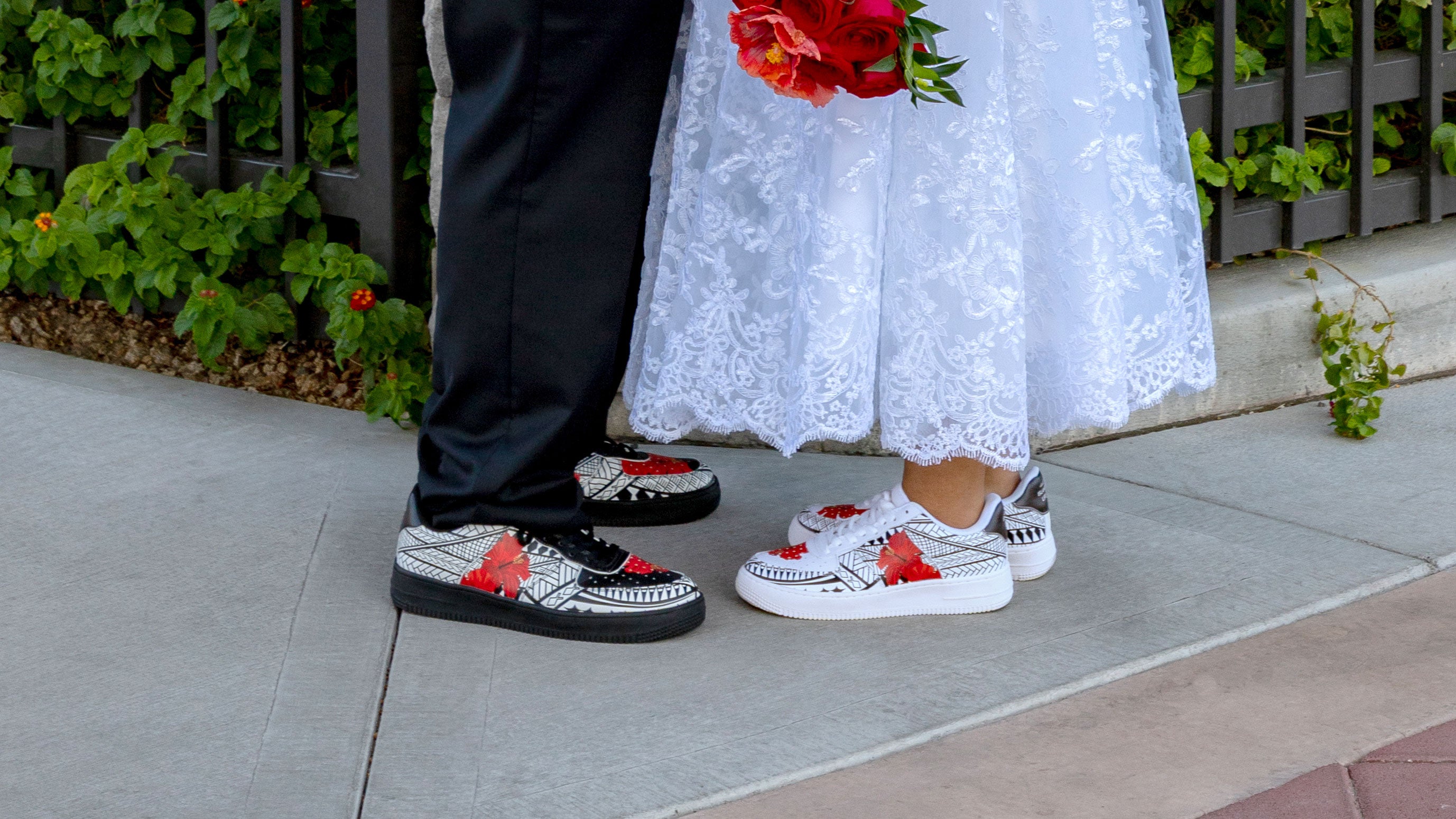 Guam Red Hibiscus Tribal Black Core Low Shoes