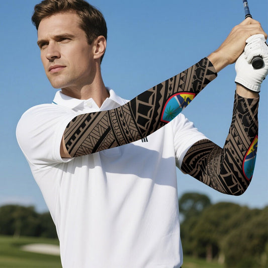 Guam Seal Tribal Brown All Over Print Arm Sleeves
