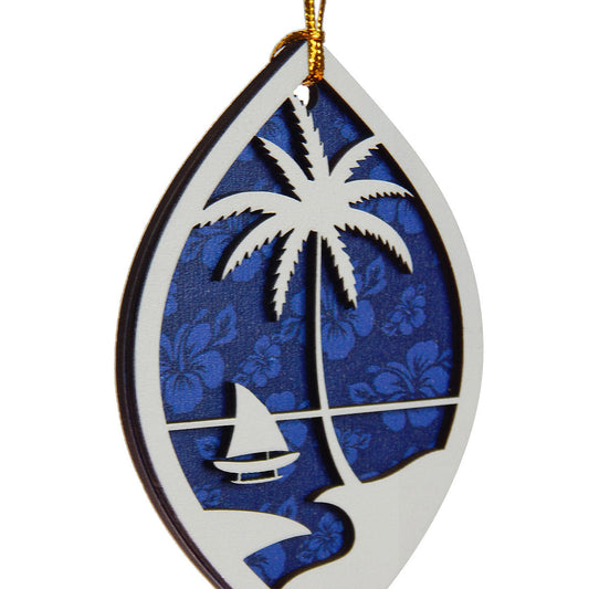 Guam Seal Blue Hibiscus Layered Wood Ornament