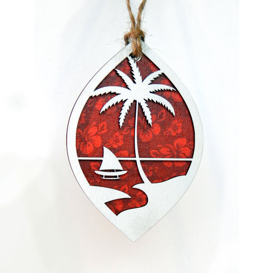 Guam Seal Red Hibiscus Layered Wood Ornament
