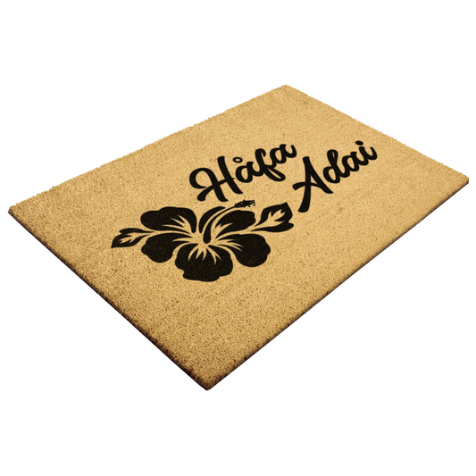Hafa Adai Hibiscus Guam CNMI Outdoor Coir Door Mat