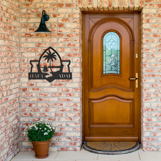 Hafa Adai Guam Seal Latte Stone Metal Wall Decor Sign