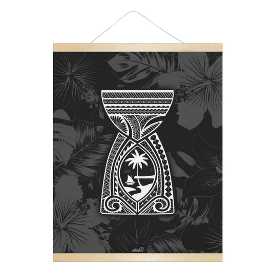 Latte Stone Guam Tribal Hanging Canvas Poster with Wood Frame