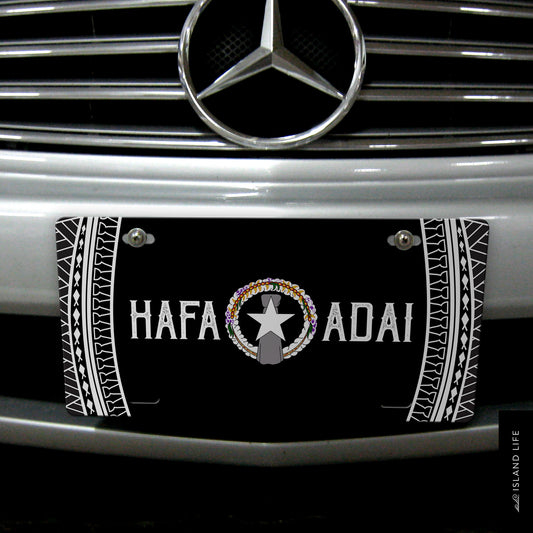 Hafa Adai Tribal Black CNMI Saipan Tinian Rota Car License Plate