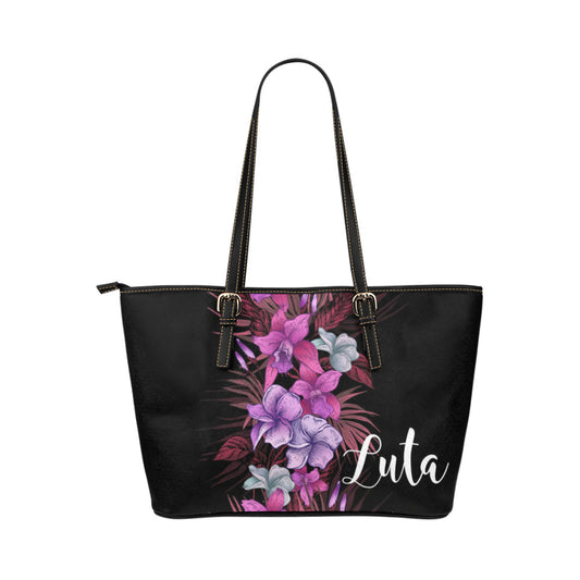 Luta Rota Vintage Purple Hibiscus Large Leather Tote Purse