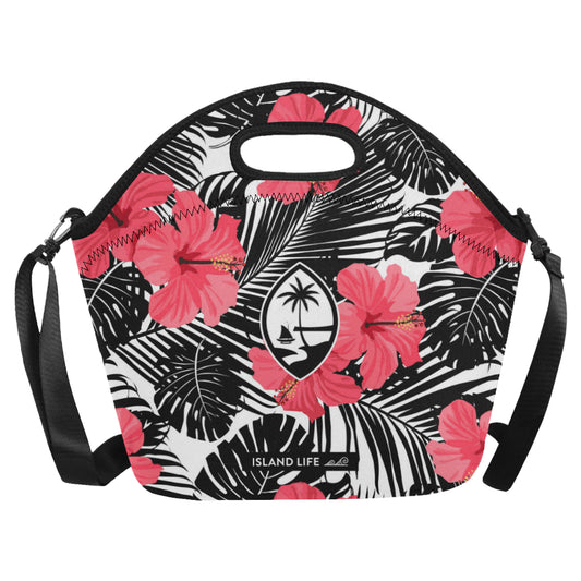 Guam Pink Black Hibiscus Leaves Neoprene Lunch Bag Large