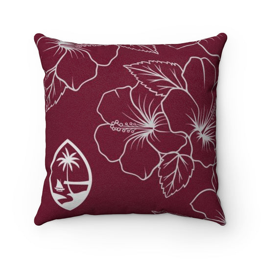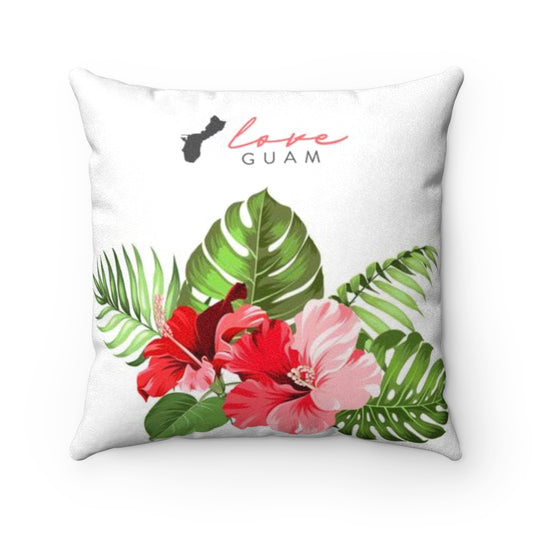 Love Guam Red Hibiscus Faux Suede Square Pillow Case