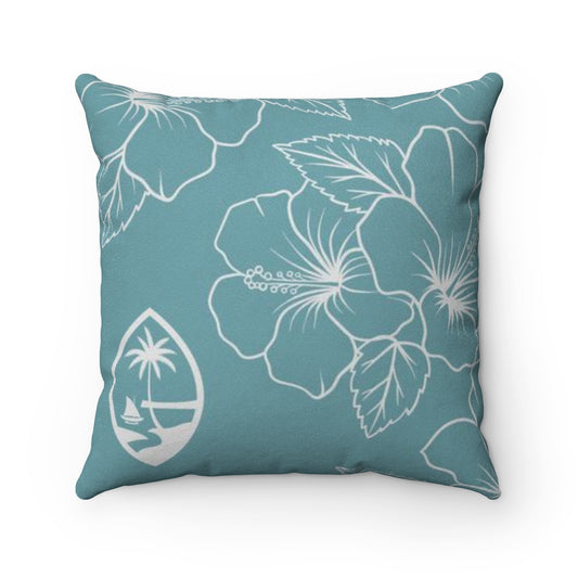 Guam Modern Hibiscus Teal Faux Suede Square Pillow Case
