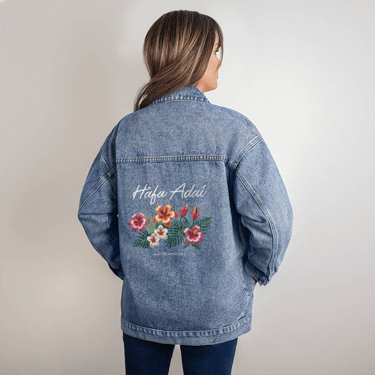 Hafa Adai Flowers Guam CNMI Oversized Women's Denim Jacket