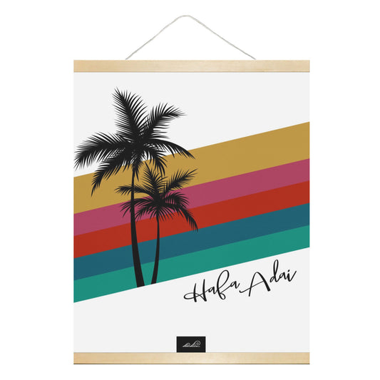 Hafa Adai Retro Rainbow Sunset Guam CNMI Hanging Canvas Poster with Wood Frame