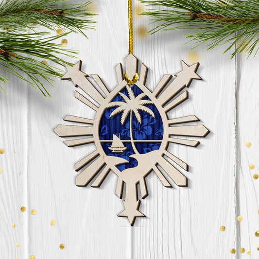 Guam Philippines Blue Hibiscus Layered Wood Ornament