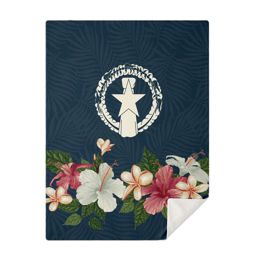 CNMI Seal Hibiscus Blue Microfleece Blanket with Personalization