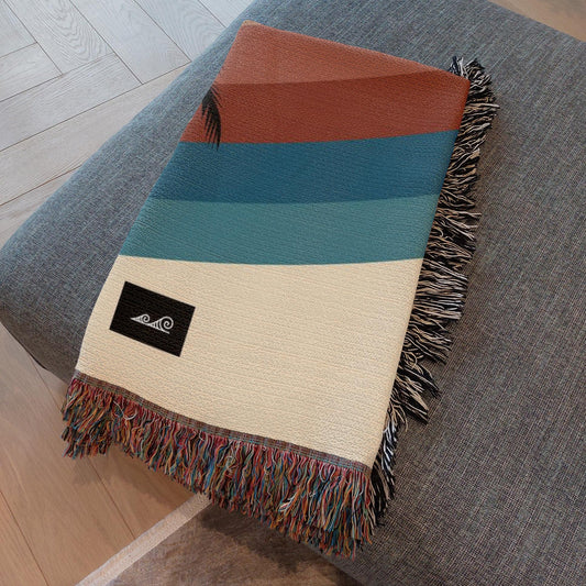 Hafa Adai Retro Rainbow Sunset Guam CNMI Woven Blanket