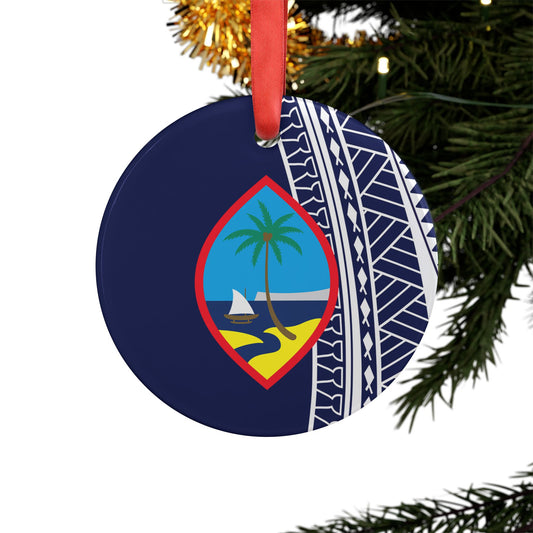 Guam Seal Blue Tribal Acrylic Ornament with Ribbon
