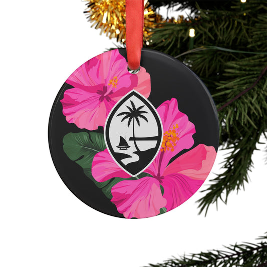 Guam Red Hibiscus Acrylic Ornament with Ribbon