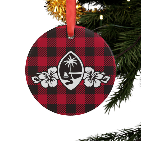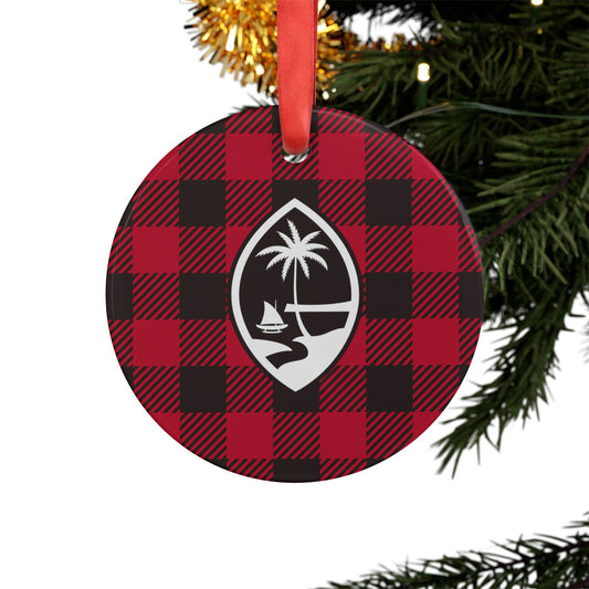 Guam Buffalo Plaid Acrylic Ornament with Ribbon