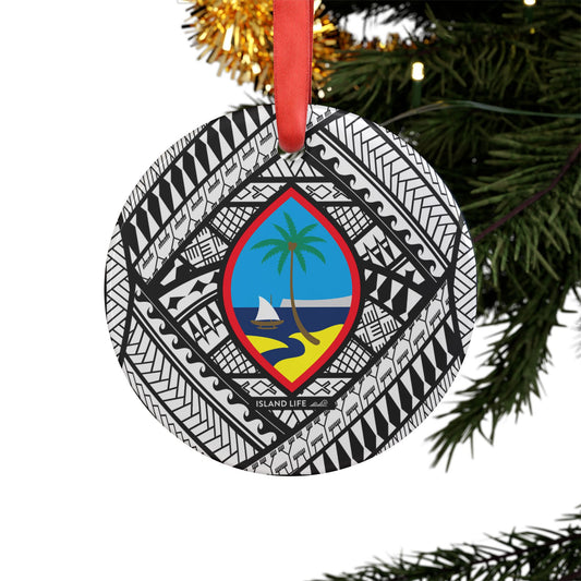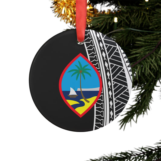 Guam Seal Black Tribal Acrylic Ornament with Ribbon
