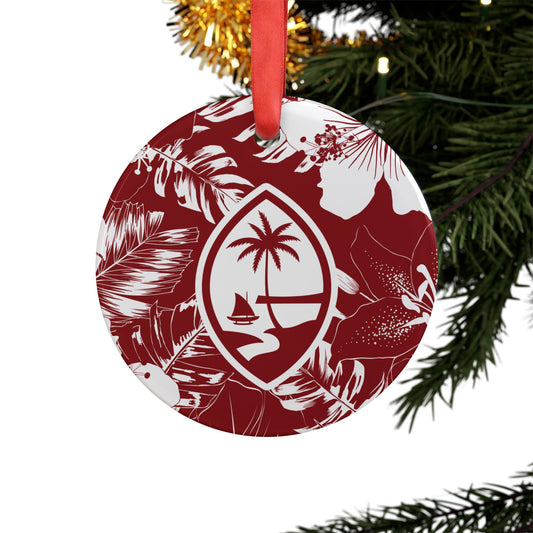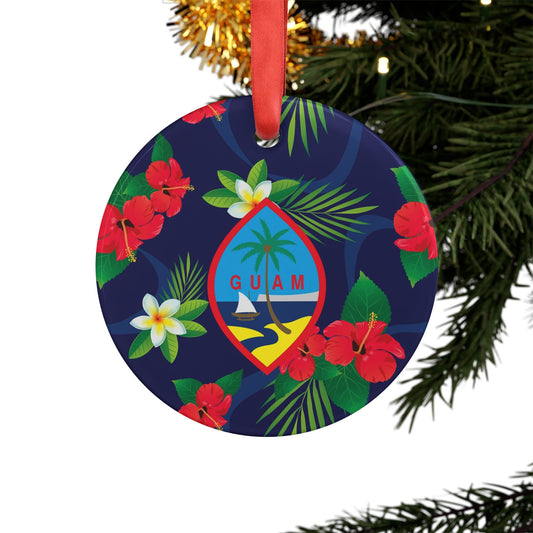 Guam Flag Flowers Acrylic Ornament with Ribbon