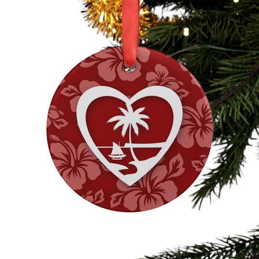 Heart Guam Hibscus Acrylic Ornament with Ribbon