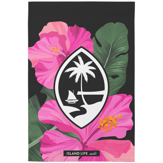 Guam Pink Hibiscus Paradise Black Double-Sided Garden Flag