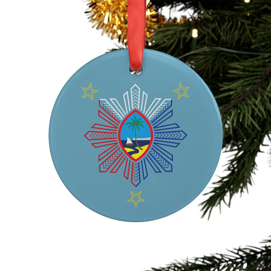 Guam Seal Blue Tribal Acrylic Ornament with Ribbon