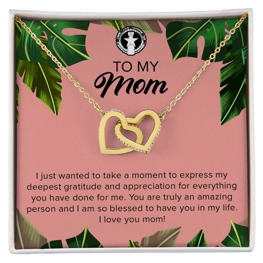 Guam Mom Tropical Leaves Interlocking Hearts Necklace