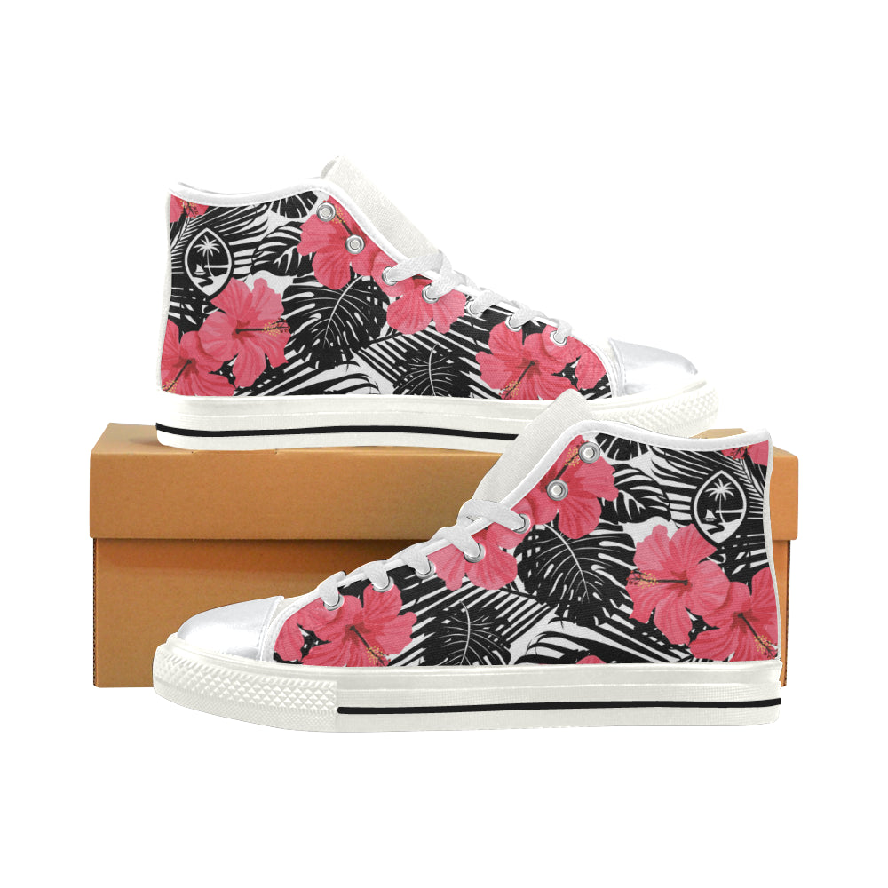 Going to a festival or cultural event? Show off your Guam pride with a custom designed Guam Pink Hibiscus and Black Coconut Leaves high top shoe!
