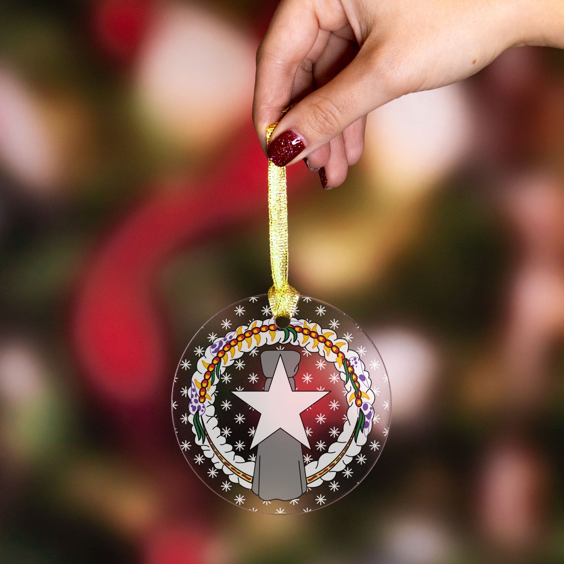 CNMI Seal Stars Christmas Clear Acrylic Round Ornament