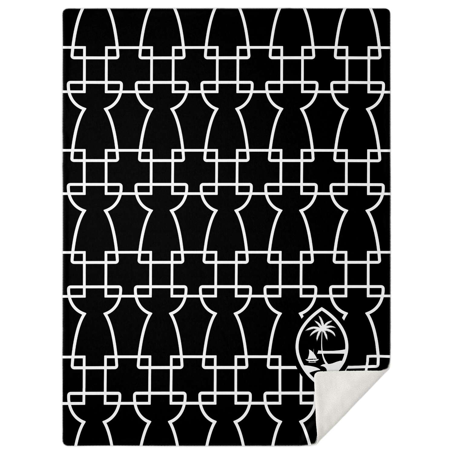 This modern design features the Guam seal with a latte stone geometric pattern on a solid black background.