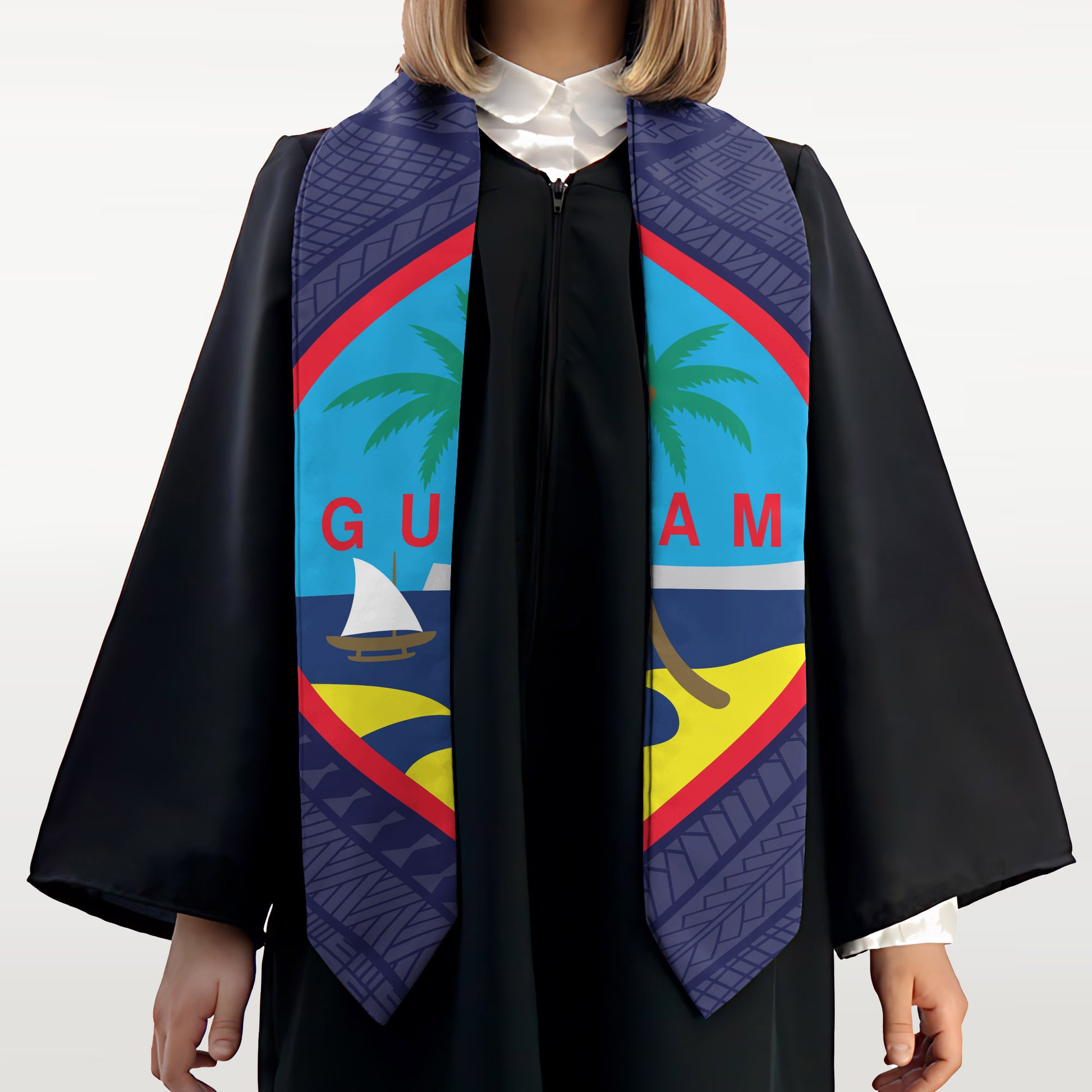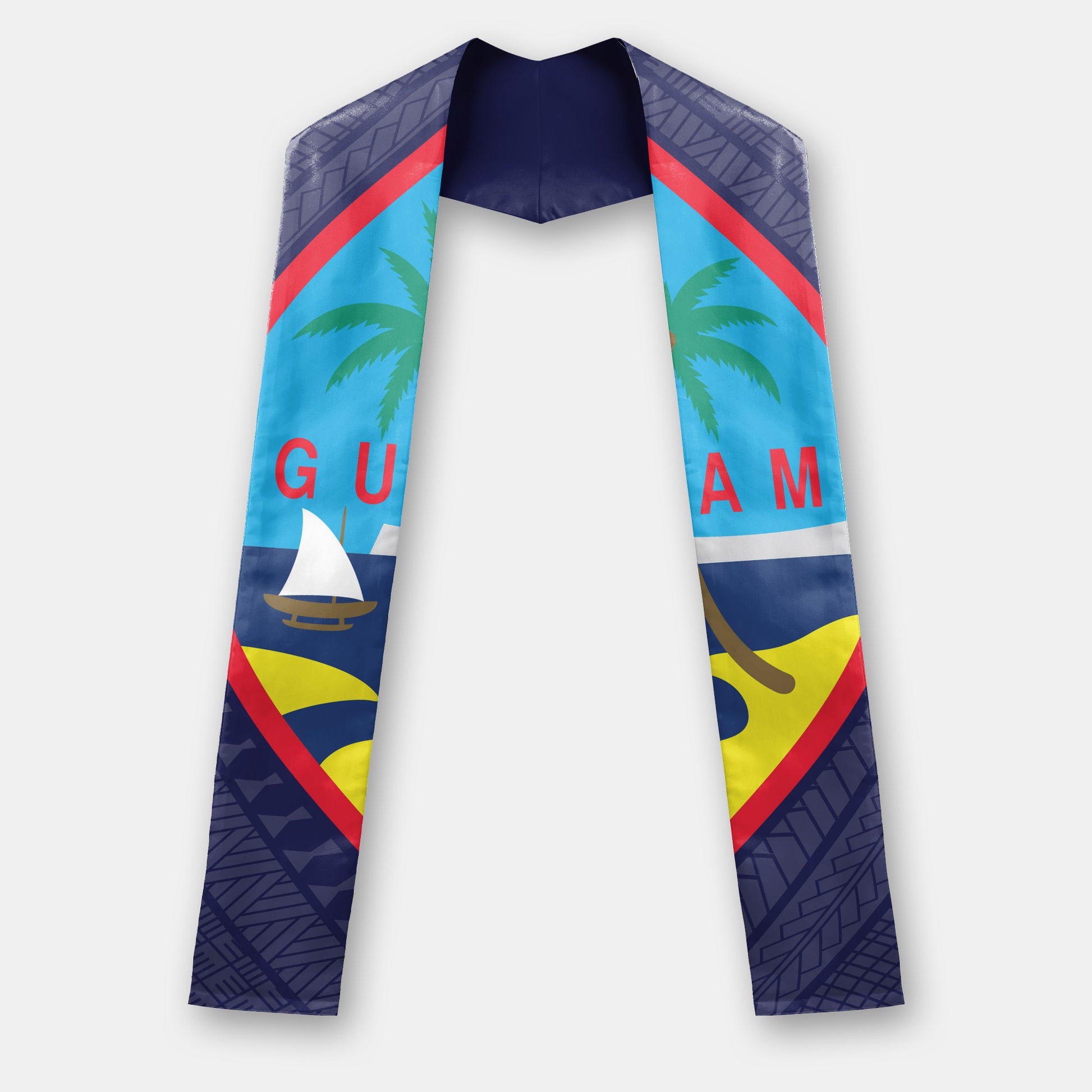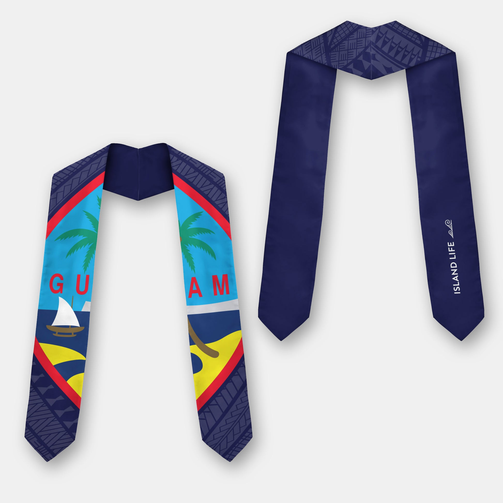 - Elevate your graduation ensemble with the Guam Graduation Stole, crafted in a luxurious 5x78" size. This length of 39 inches on each side adheres to the sizing specifications of most prestigious academic institutions.