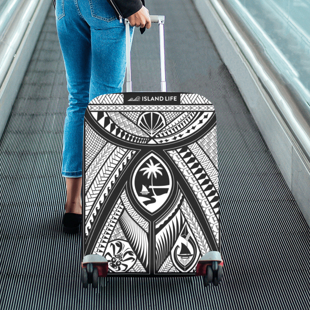 Take your travels to the next level with our Guahan Tribal Luggage Cover. Made with a strong and stretchy polyester-spandex blend for a perfect fit and long-lasting wear. With a bold and vibrant print that won't fade, this luggage cover will keep the fun going on any journey.