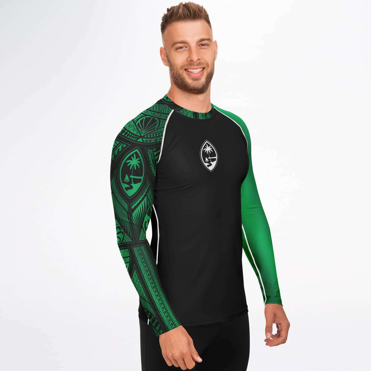 Guahan Tribal Men's Green Rashguard