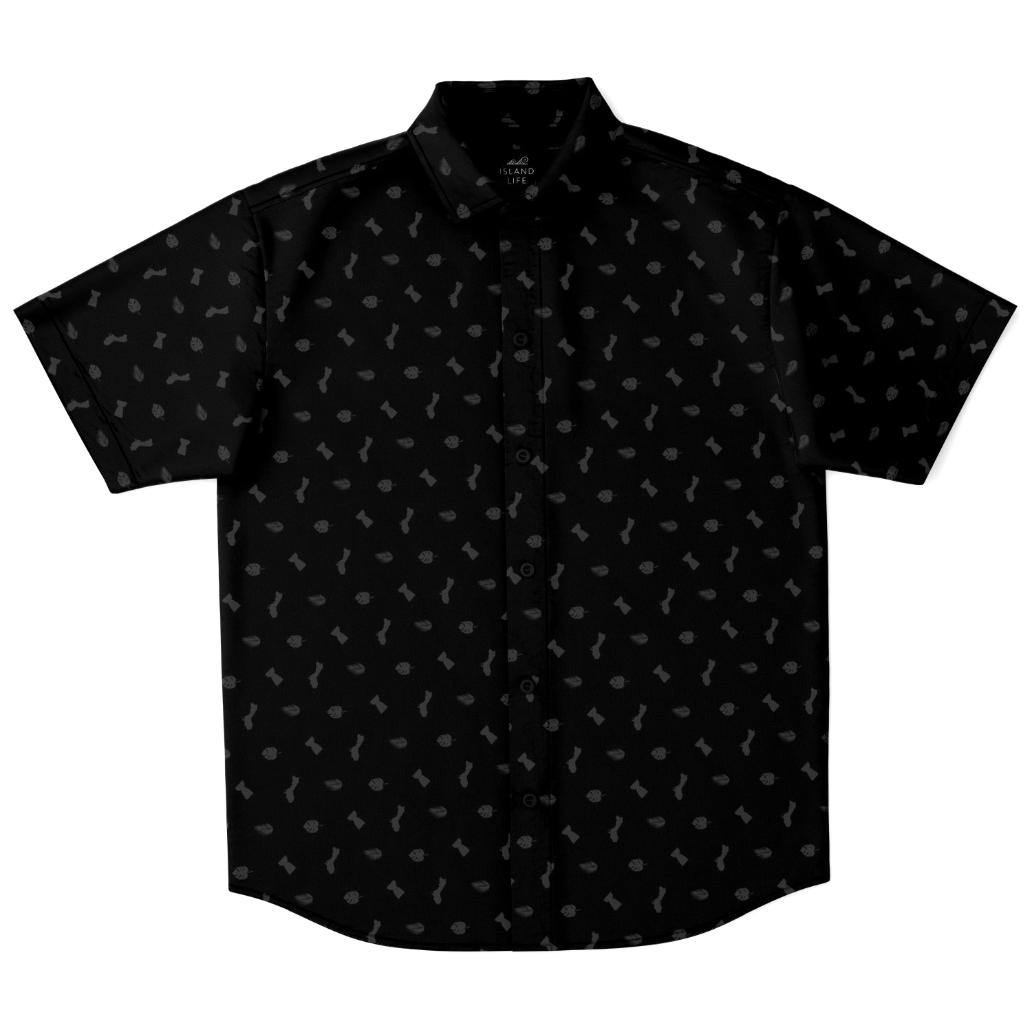 Represent your favorite island at weddings and other events with this Guam Black Button Down All Over Print shirt featuring a background with latte stones, the island of Guam, coconut leaves and breadfruit leaves. It comes in a regular width and spread collar. Perfect for those dressier hot days.