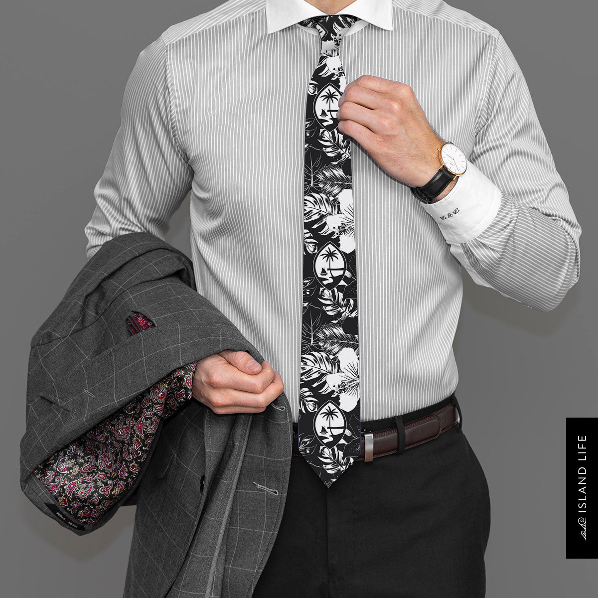 Represent your favorite island at weddings and other events with this Guam Seal Classic Necktie featuring Guam seals and hibiscus flowers. It comes in a regular width and spread collar. Perfect for those dressier hot days.