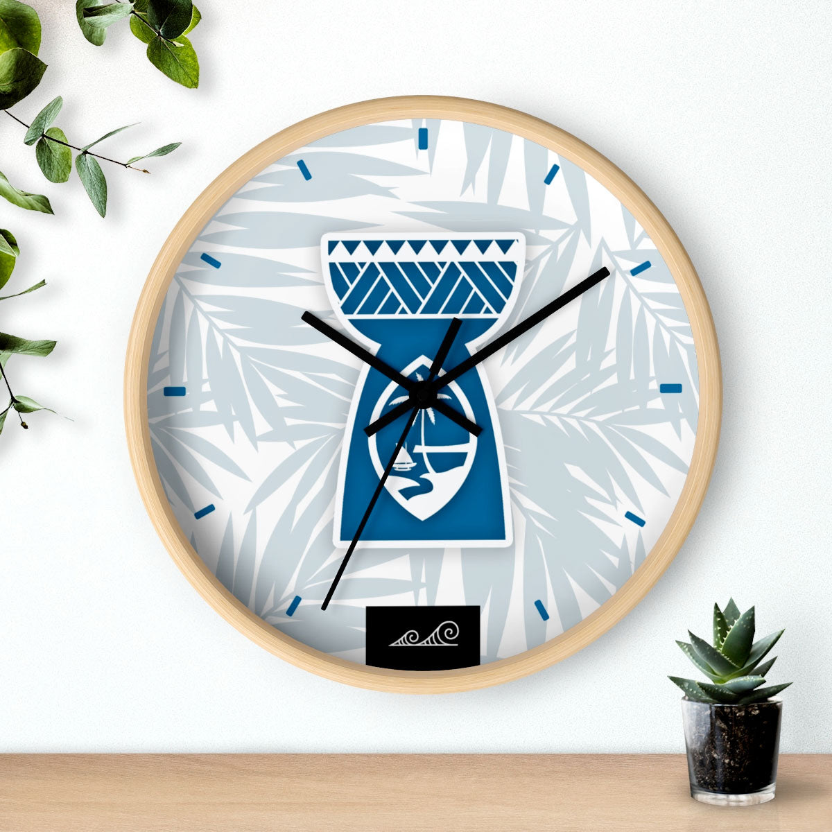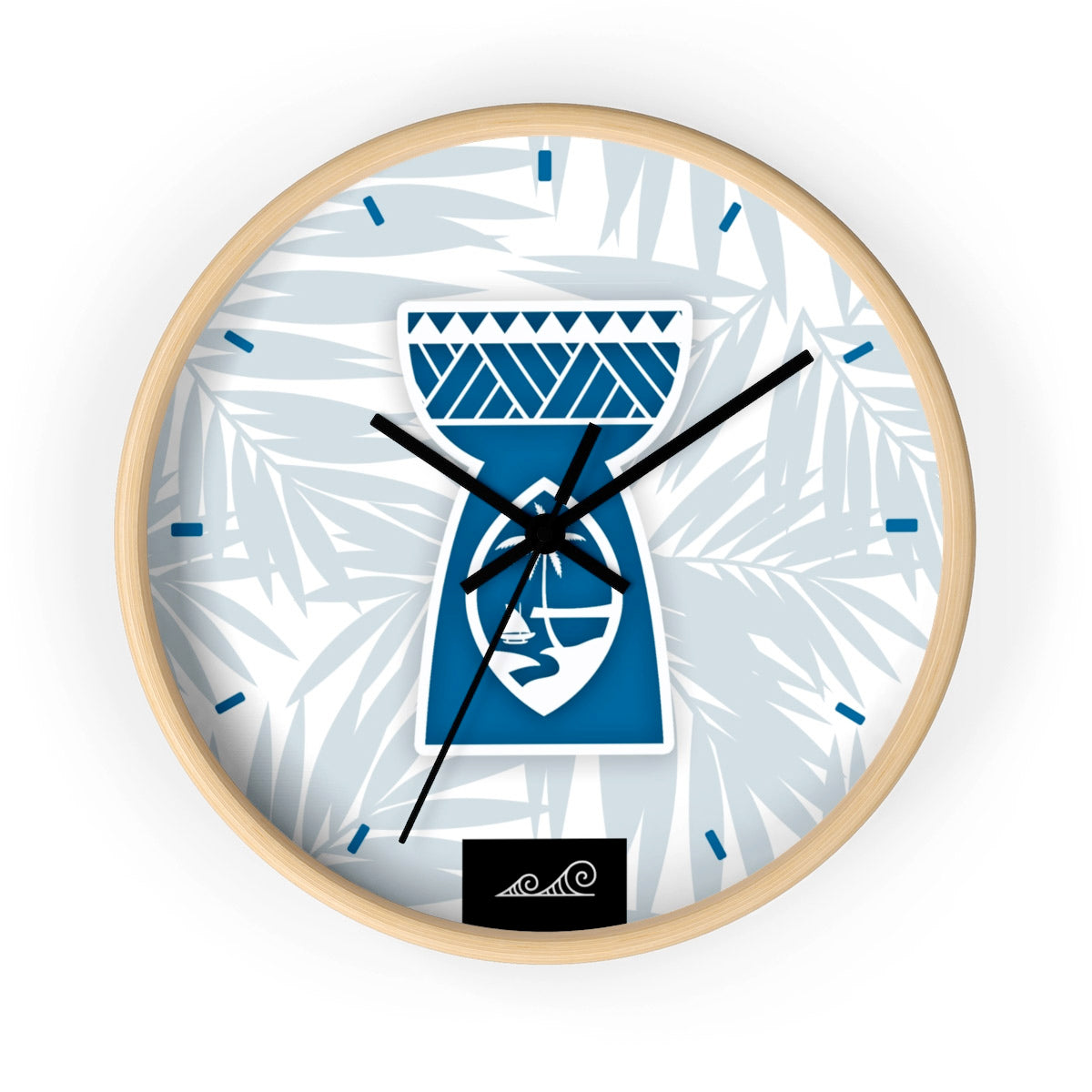 Bring a little taste of the island into your home with this tropical wooden wall clock. This design features a tribal latte stone with the Guam seal on a tropical leaves background.