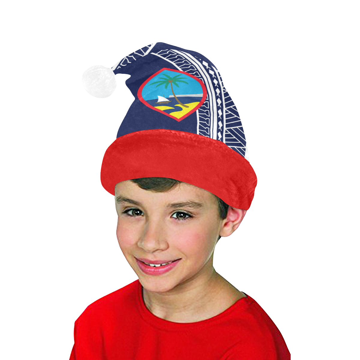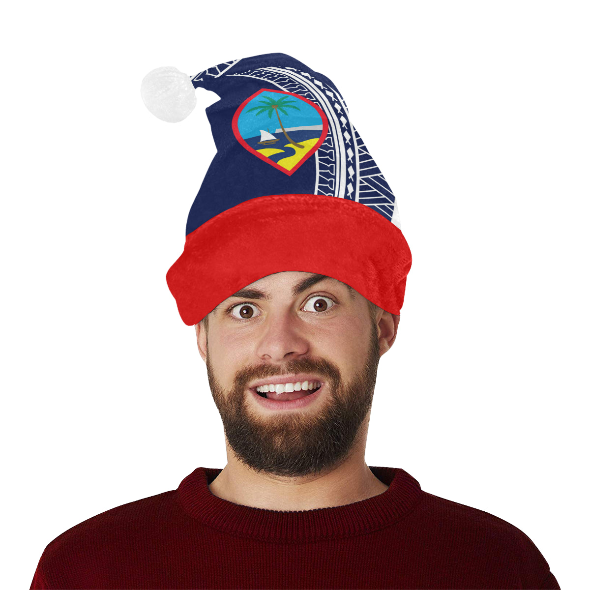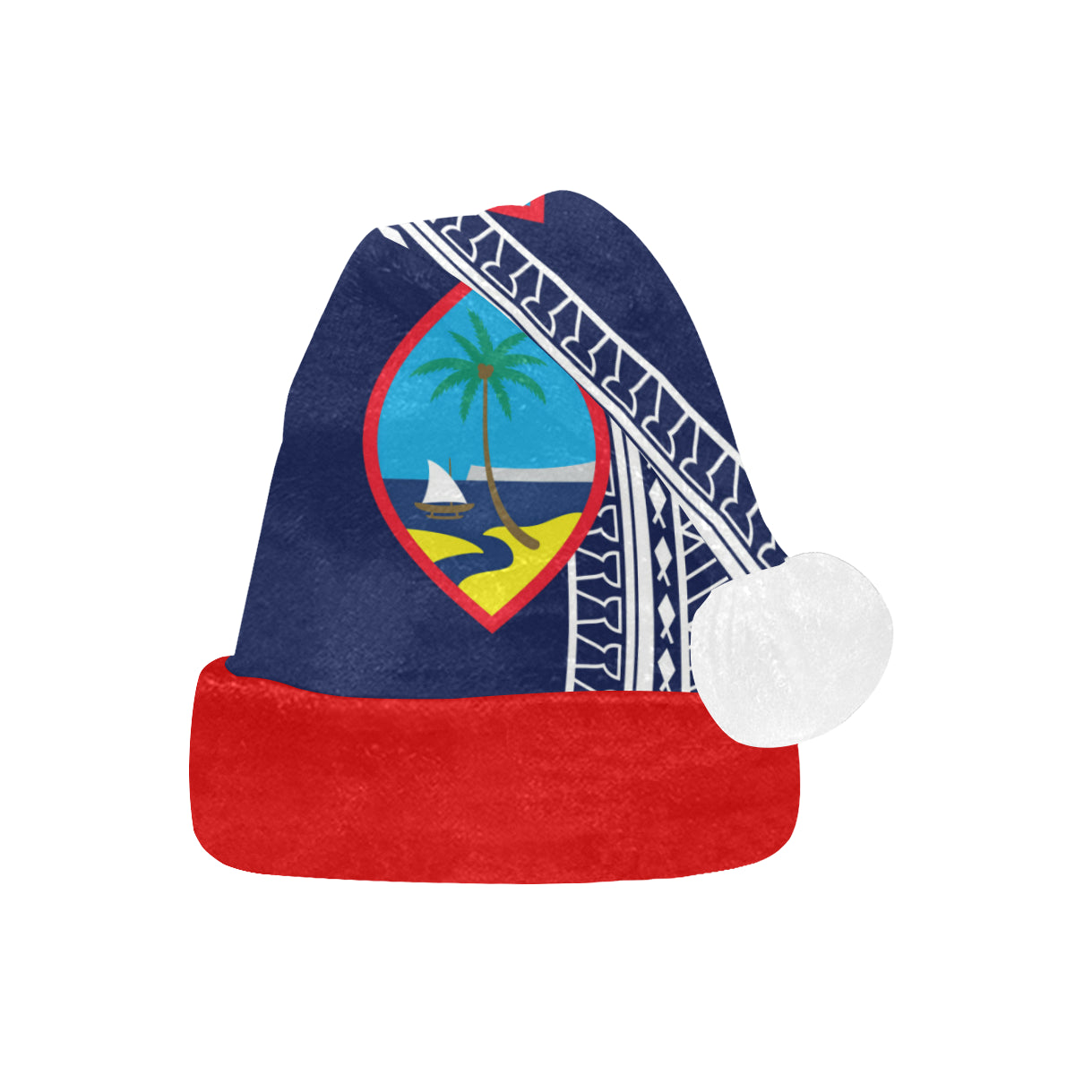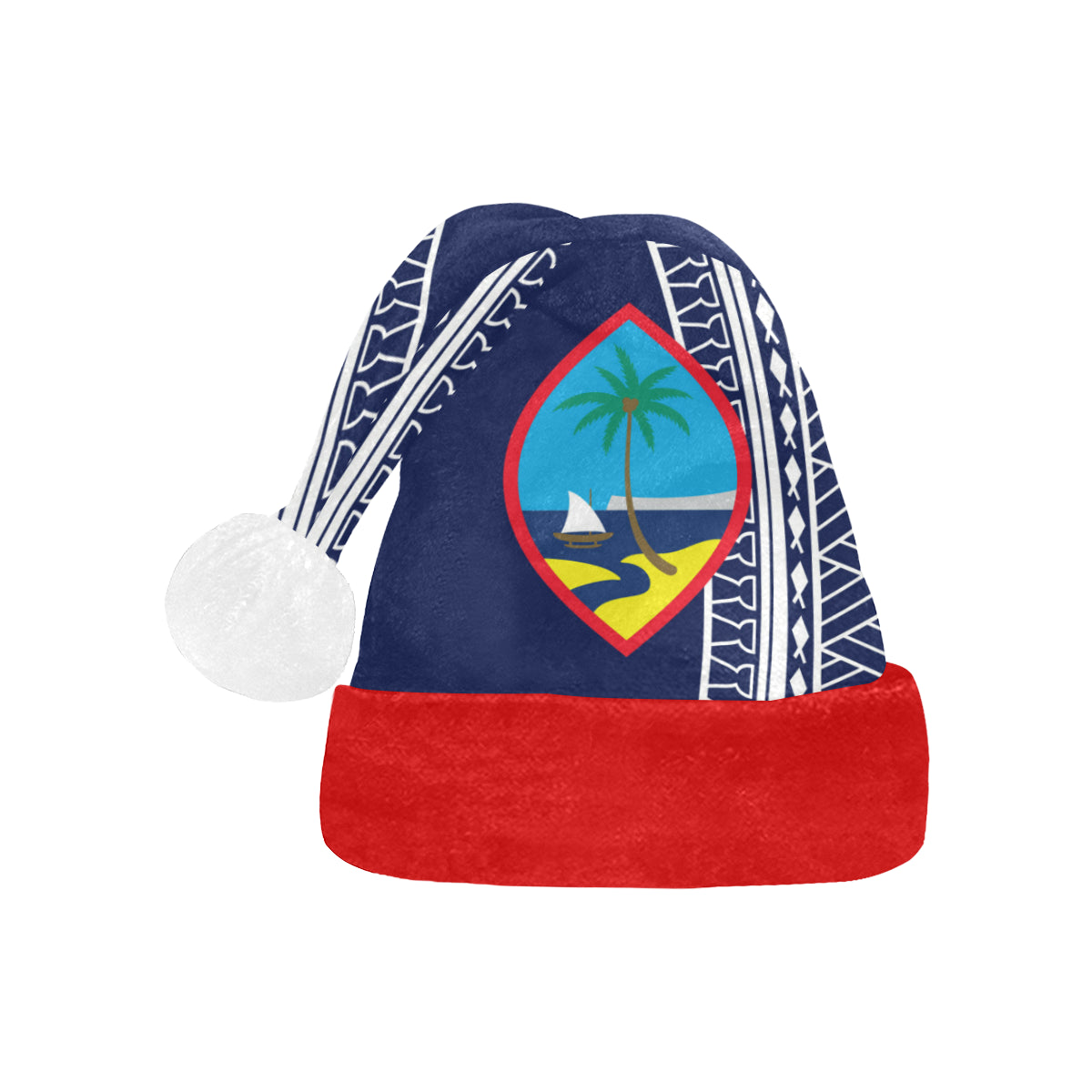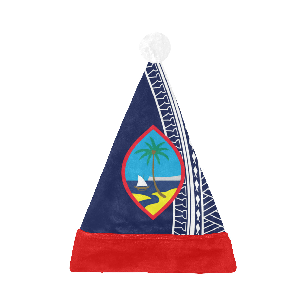 Celebrate a Chamorro Christmas with a custom designed Guam Seal Tribal Christmas Santa Hat! The design includes the Guam seal with a tribal design featuring latte stones, fish and basket weaving. Perfect for that work Christmas Party or just hanging with family. Felis Nabidat!