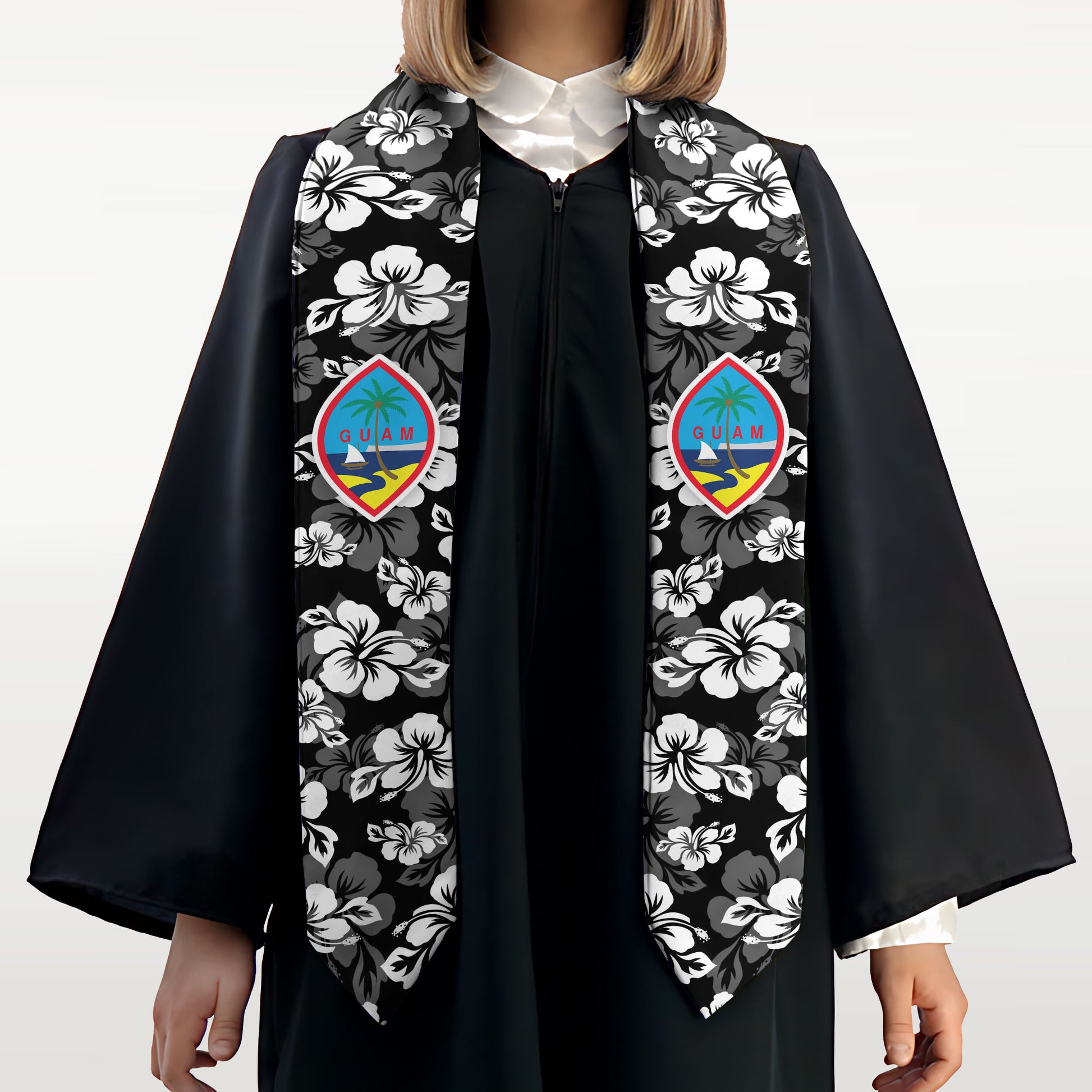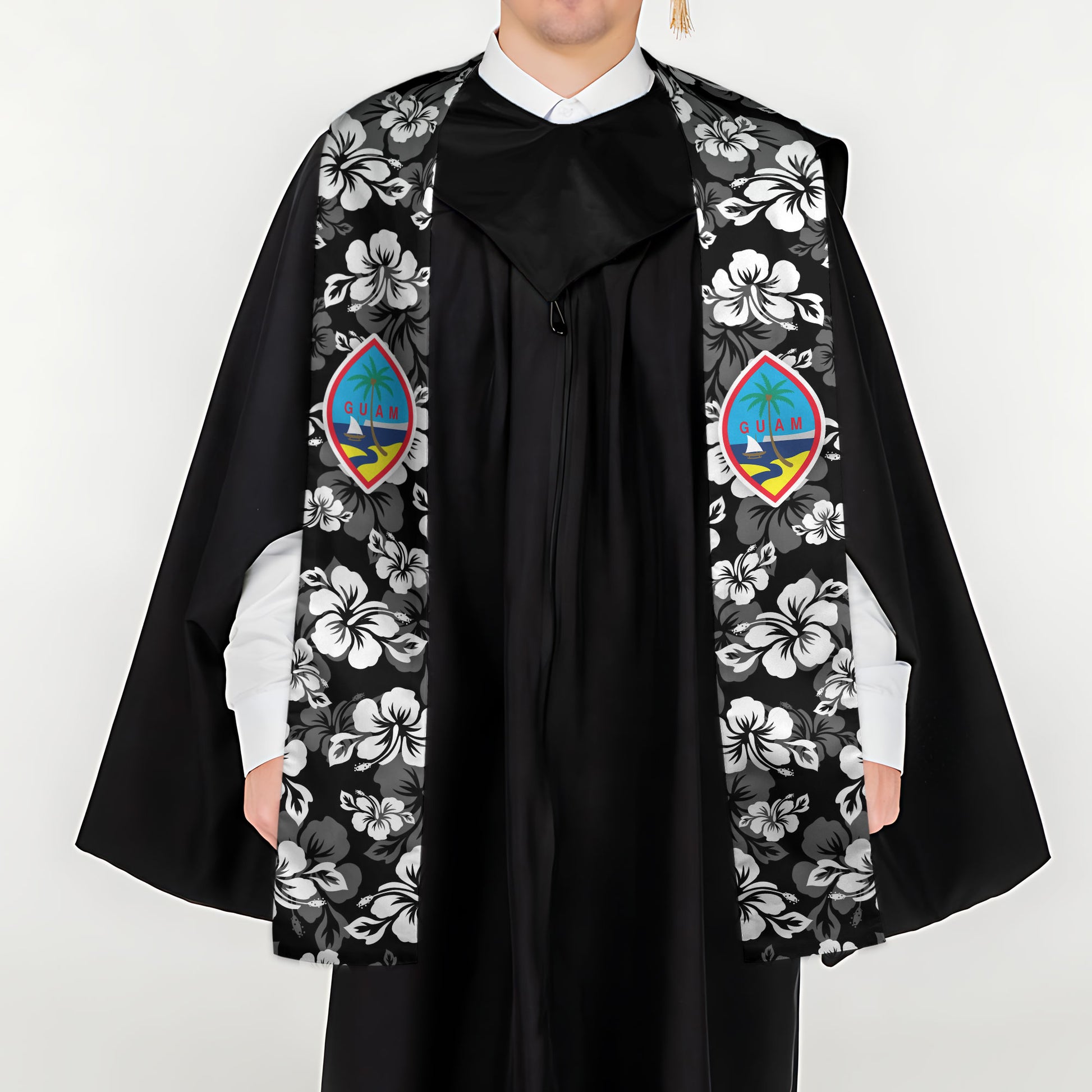 - Elevate your graduation ensemble with the Guam Graduation Stole, crafted in a luxurious 5x78" size. This length of 39 inches on each side adheres to the sizing specifications of most prestigious academic institutions.