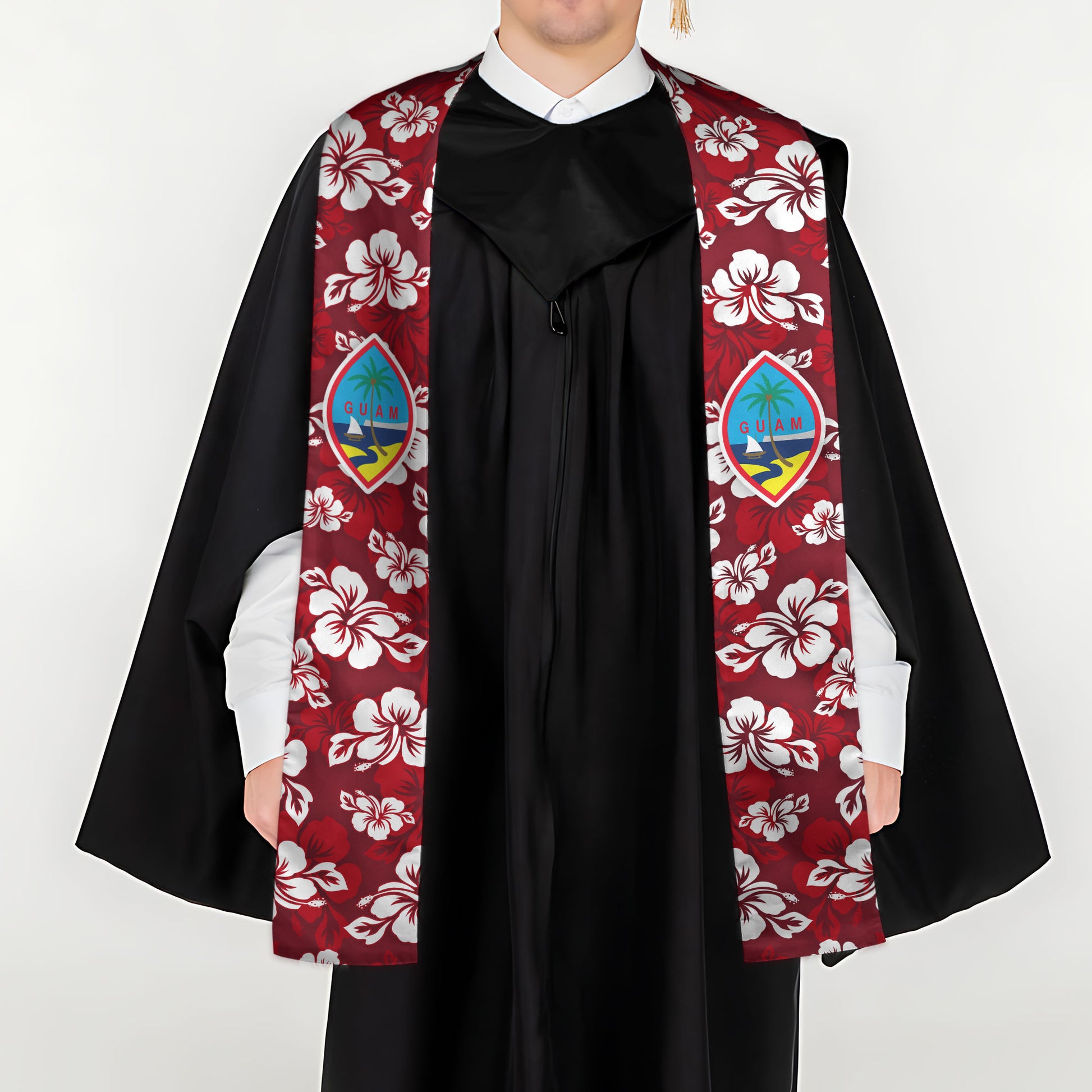 - Elevate your graduation ensemble with the Guam Graduation Stole, crafted in a luxurious 5x78" size. This length of 39 inches on each side adheres to the sizing specifications of most prestigious academic institutions.