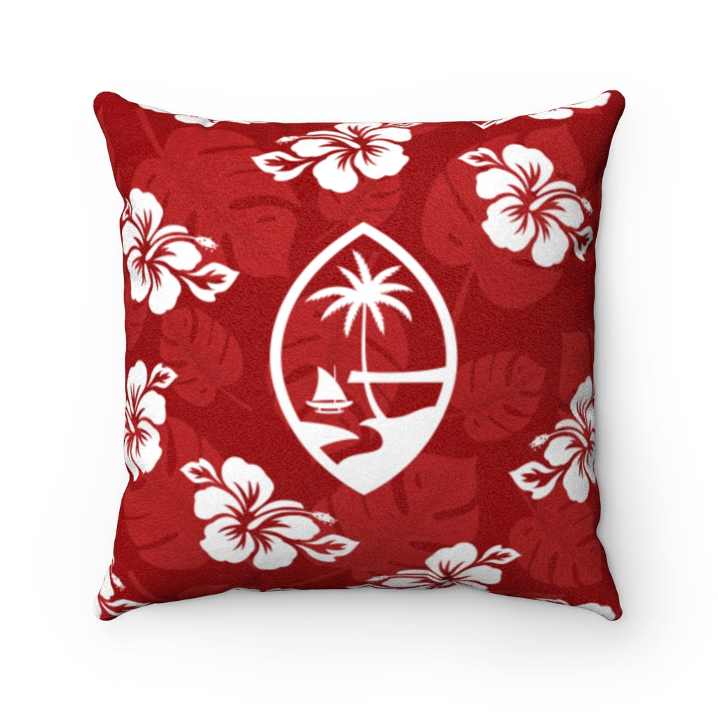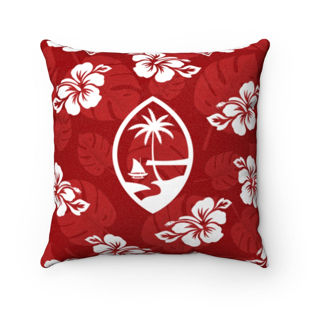 Guam Classic Red Hibiscus Faux Suede Square Pillow Case