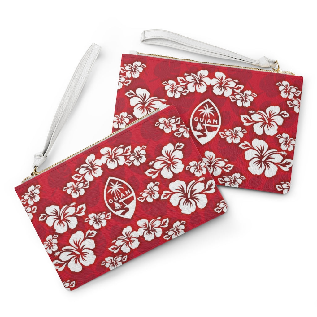 This design features white hibiscus flowers and the Guam seal on a red background. It's the perfect reminder of home.