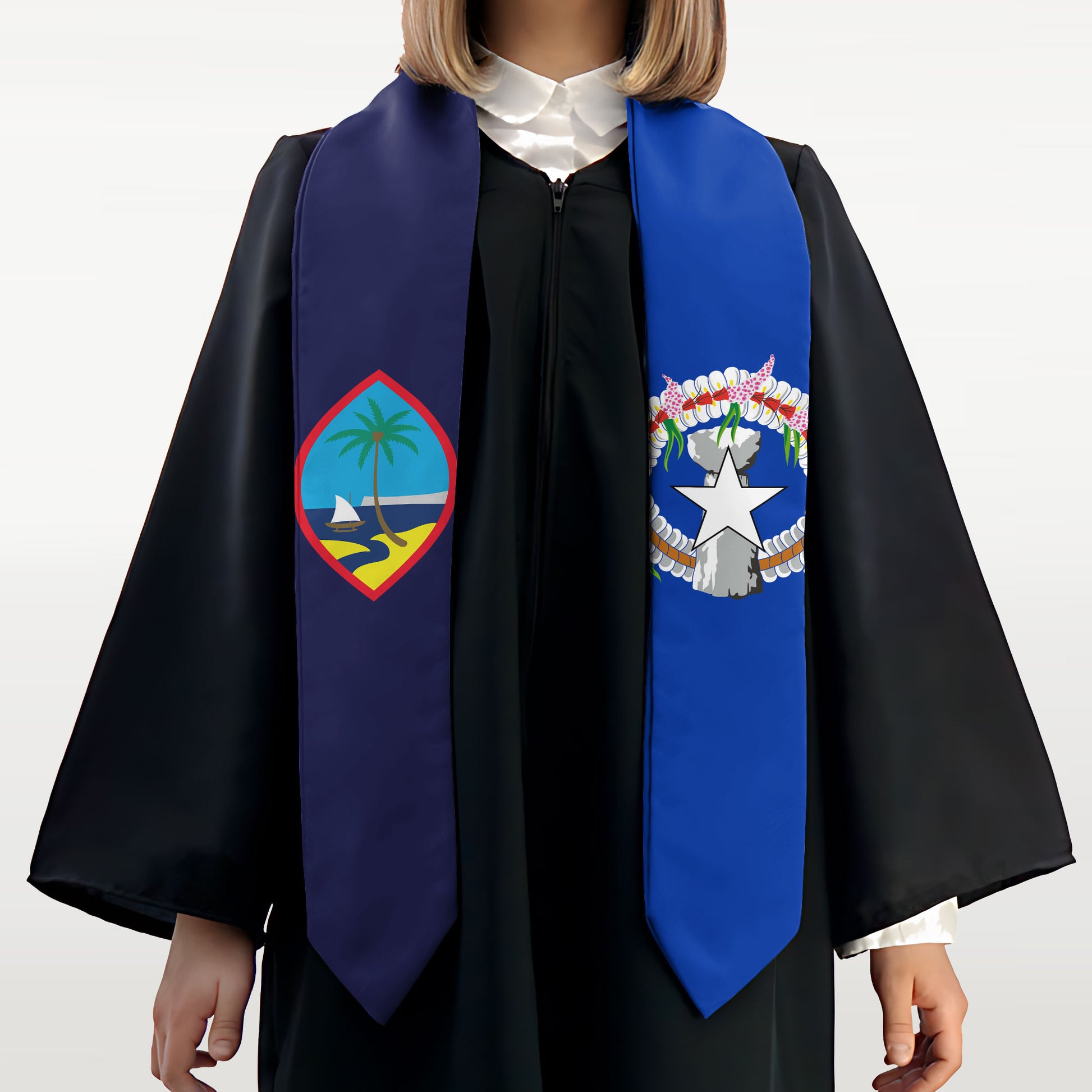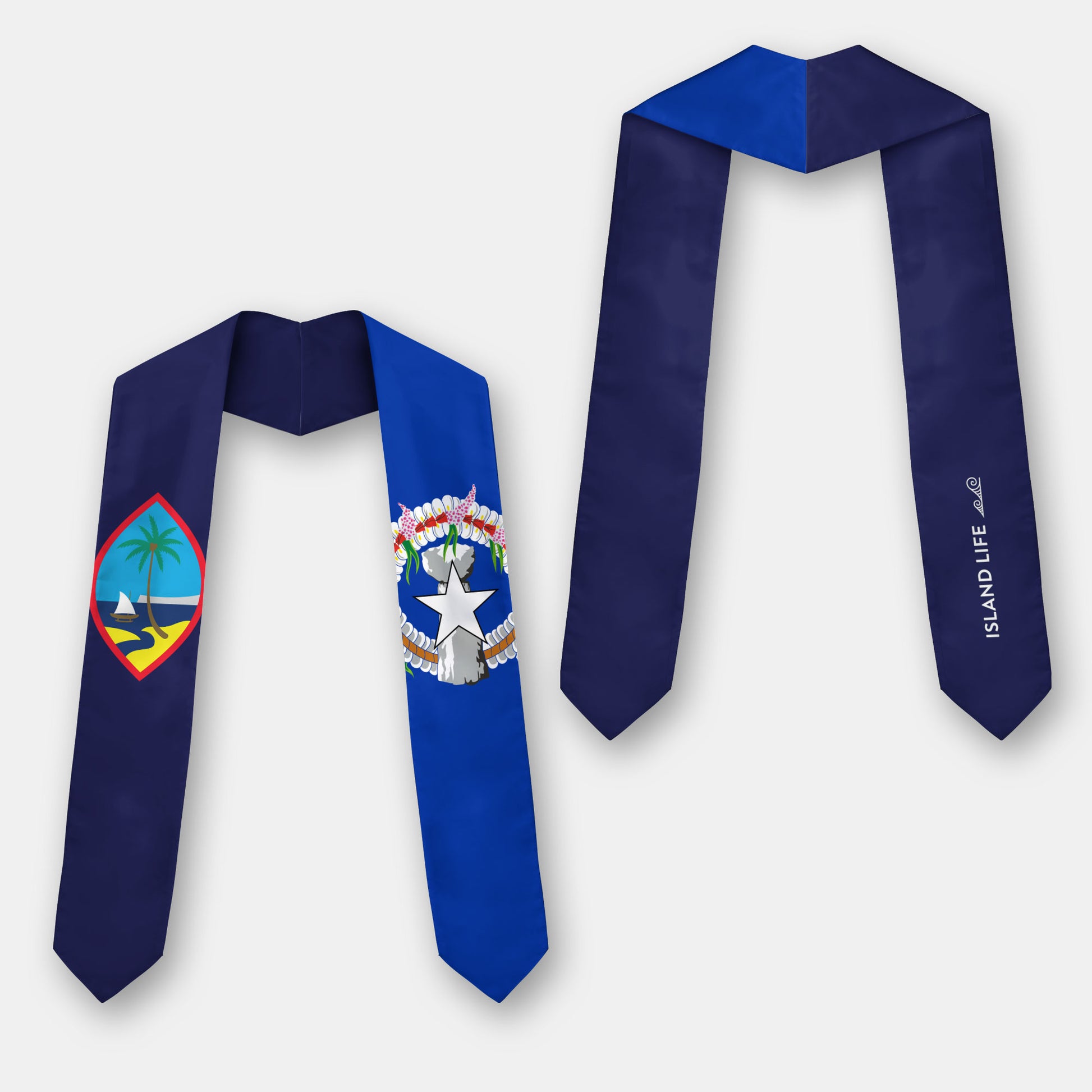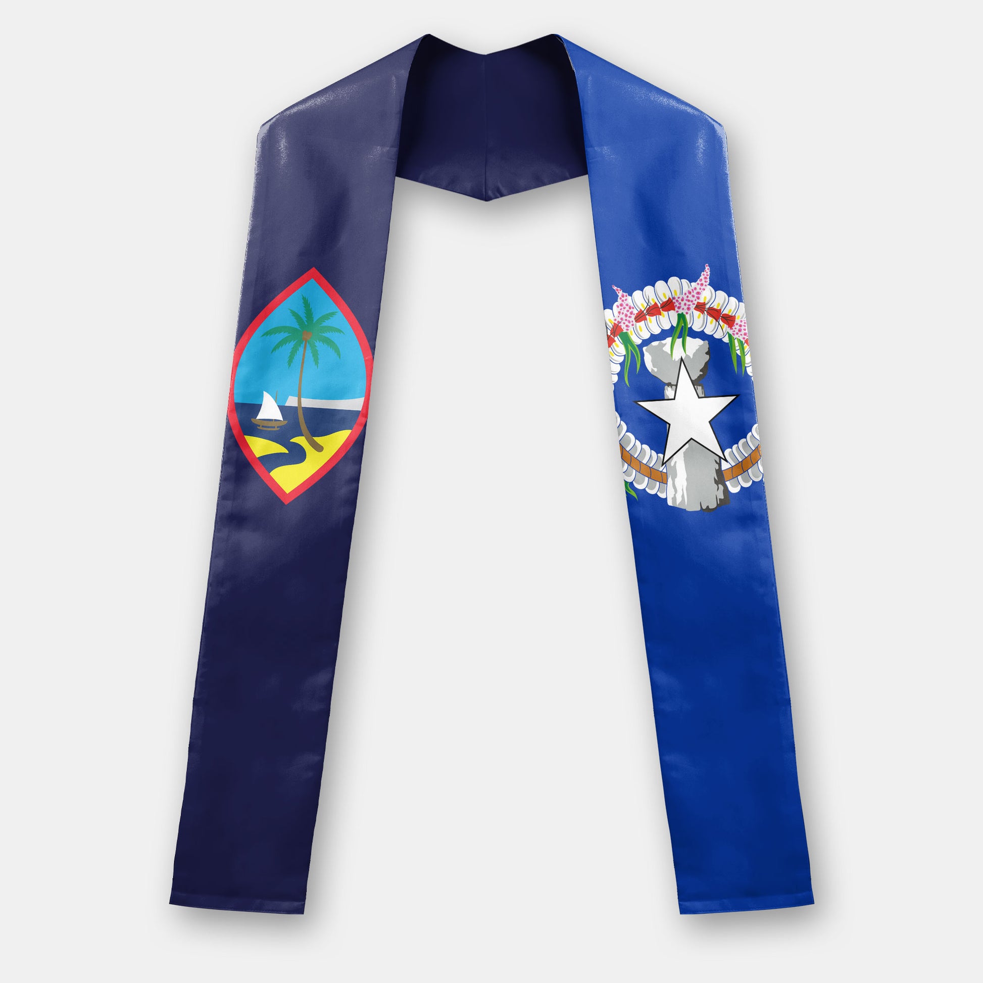 - Elevate your graduation ensemble with the Guam CNMI Graduation Stole, crafted in a luxurious 5x78" size. This length of 39 inches on each side adheres to the sizing specifications of most prestigious academic institutions.