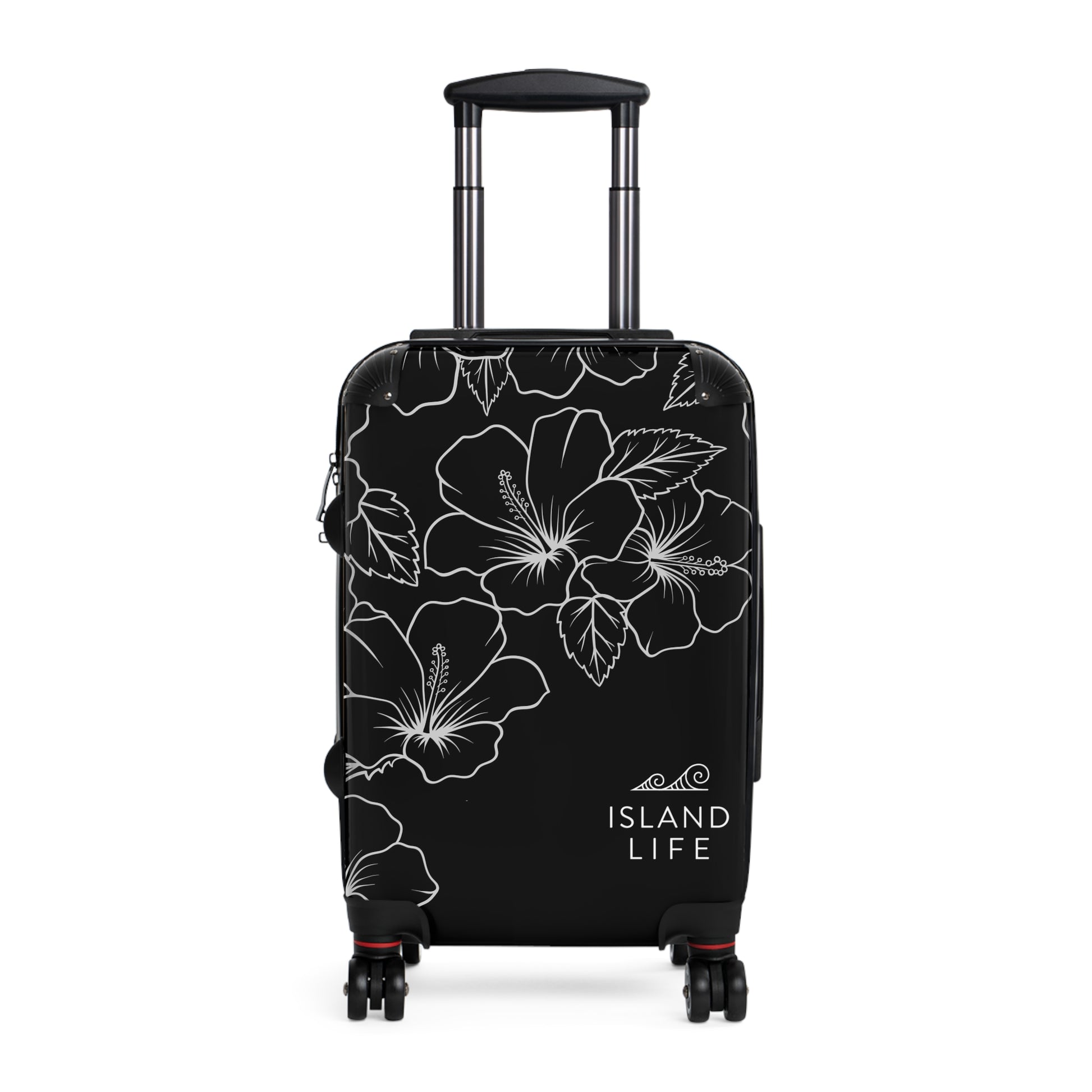 Guam CNMI Modern Hibiscus Black Carry On Cabin Suitcase Luggage