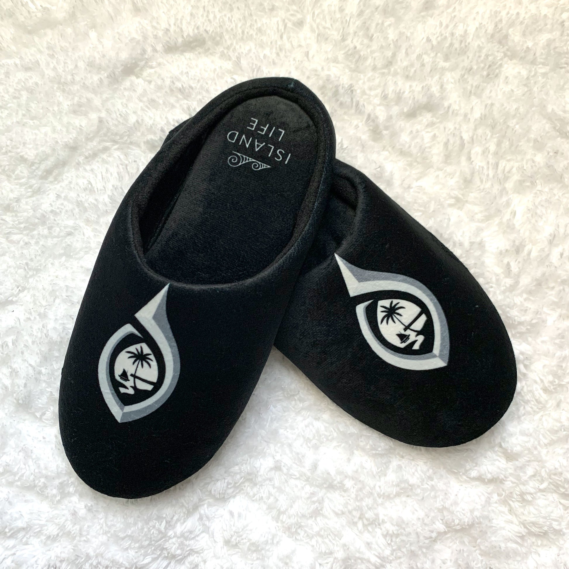 Let the warmth of the island of Guam keep you cozy during the colder weather off-island. These house slippers have a synthetic velvet lining to keep your feet warm and cozy.