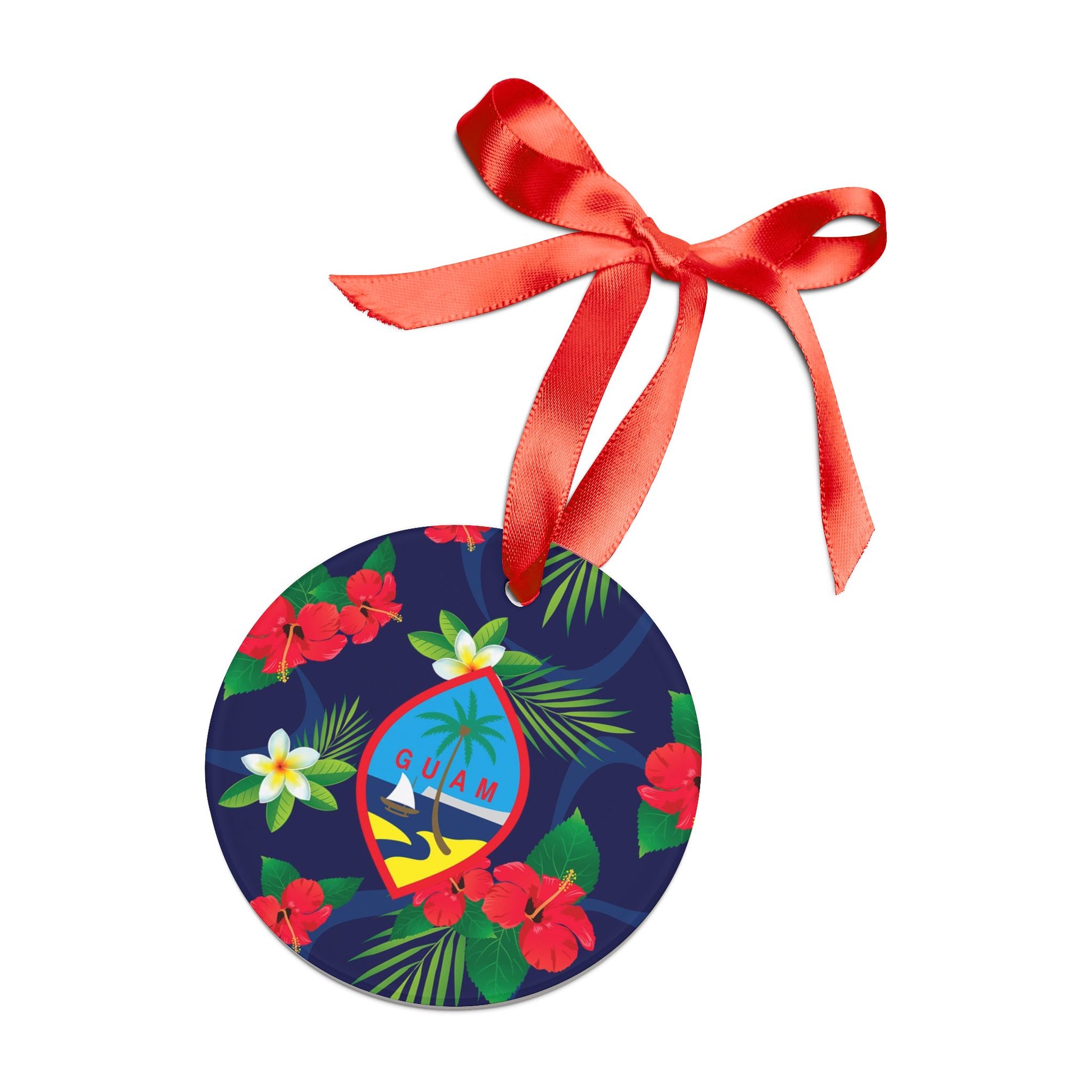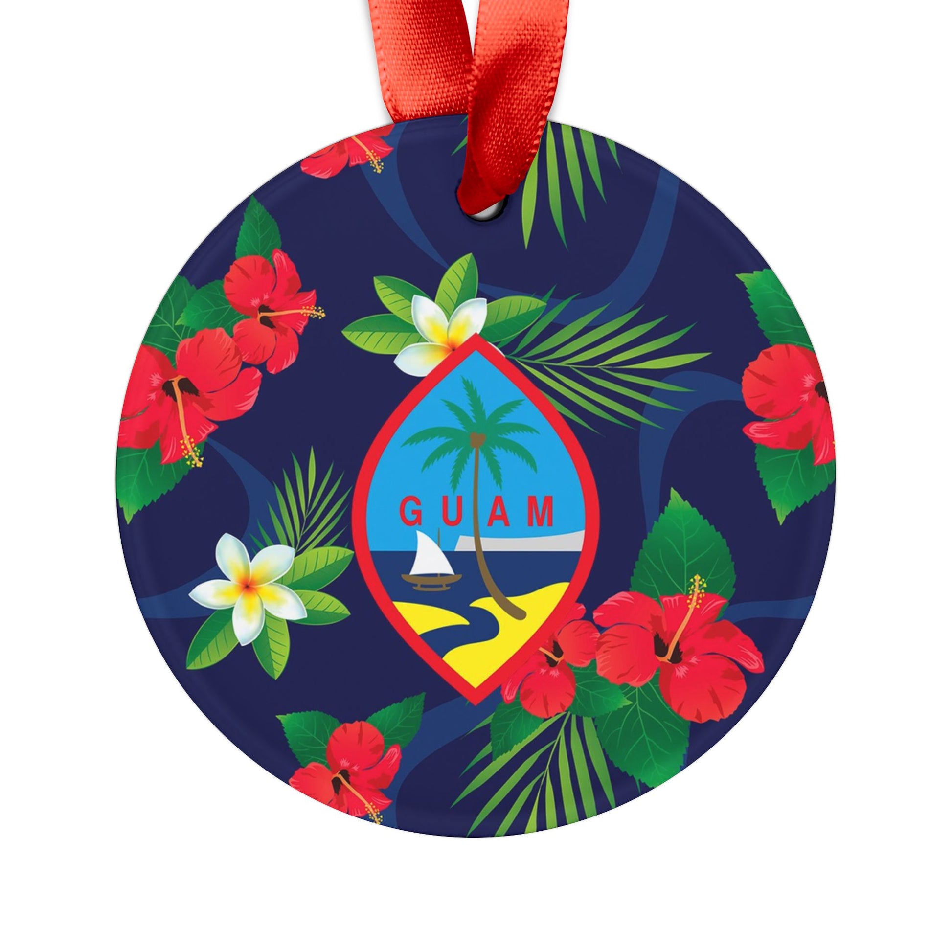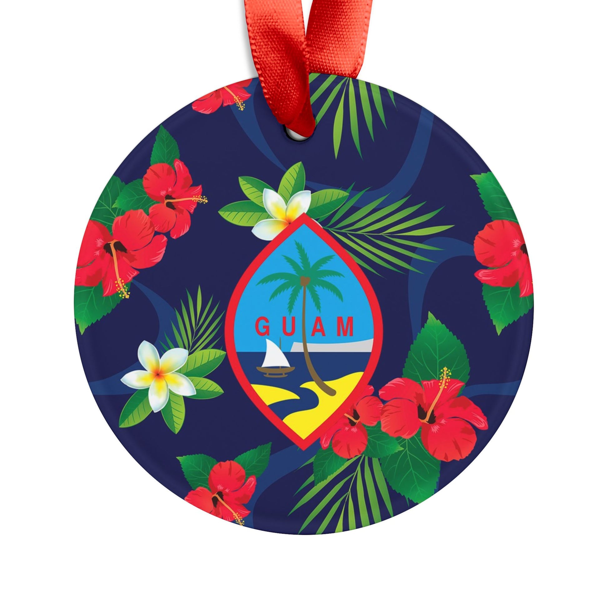 Guam Flag Flowers Acrylic Ornament with Ribbon