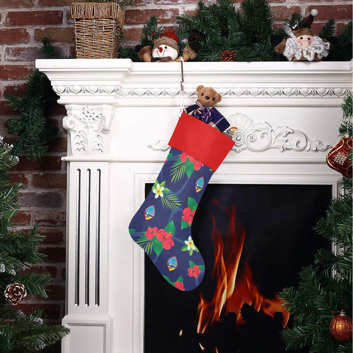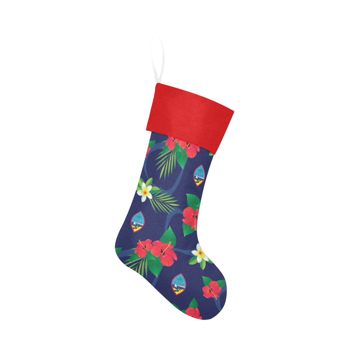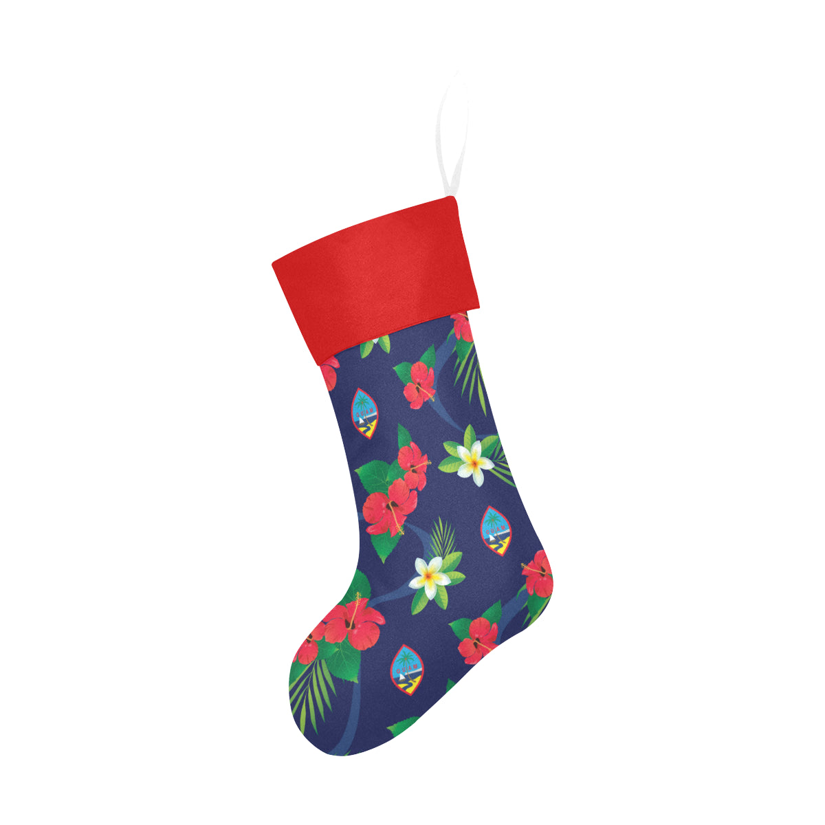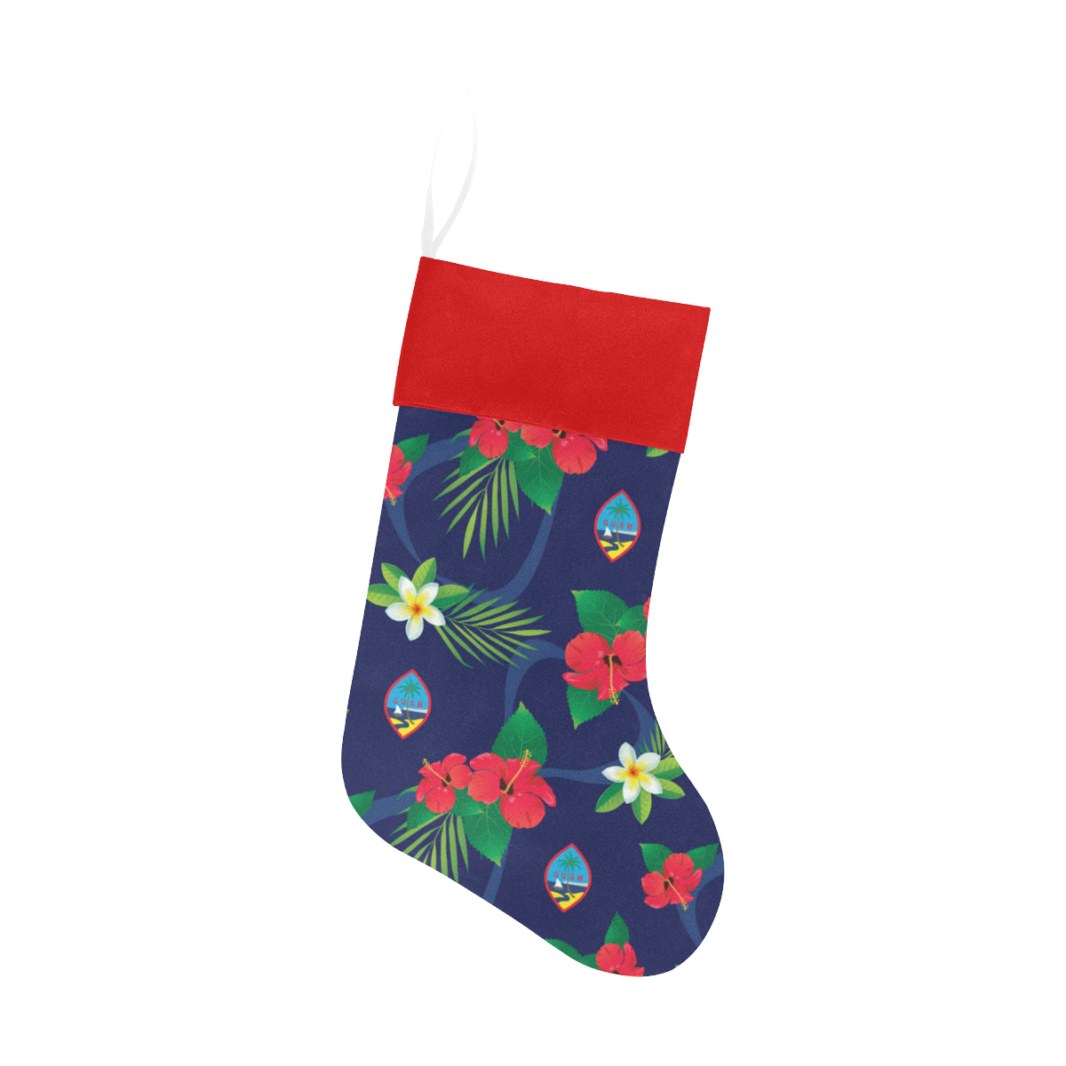 Guam Christmas Stocking featuring flowers and colors that all compliment or match the Guam seal and are set on the same deep blue background from the Guam flag. The perfect way to keep your island home close during Christmas.