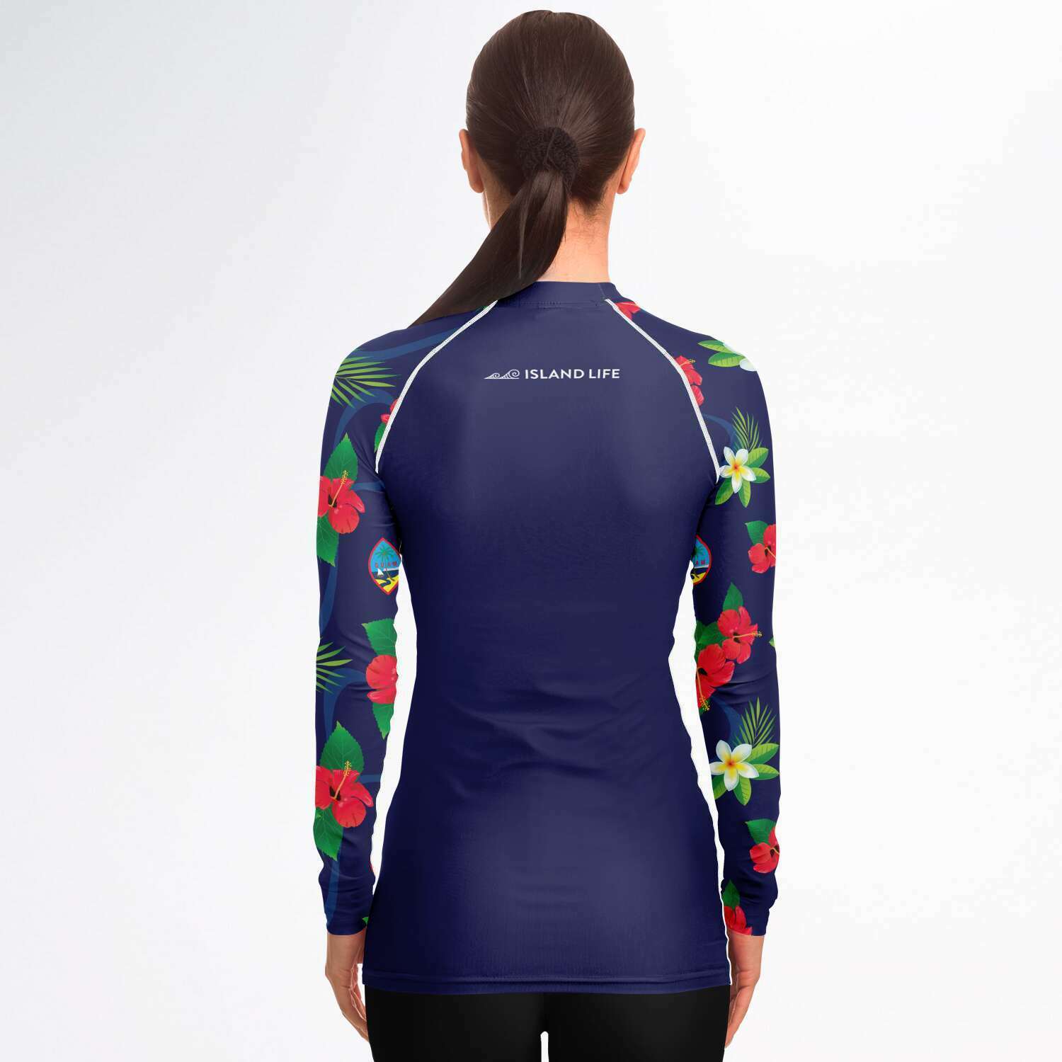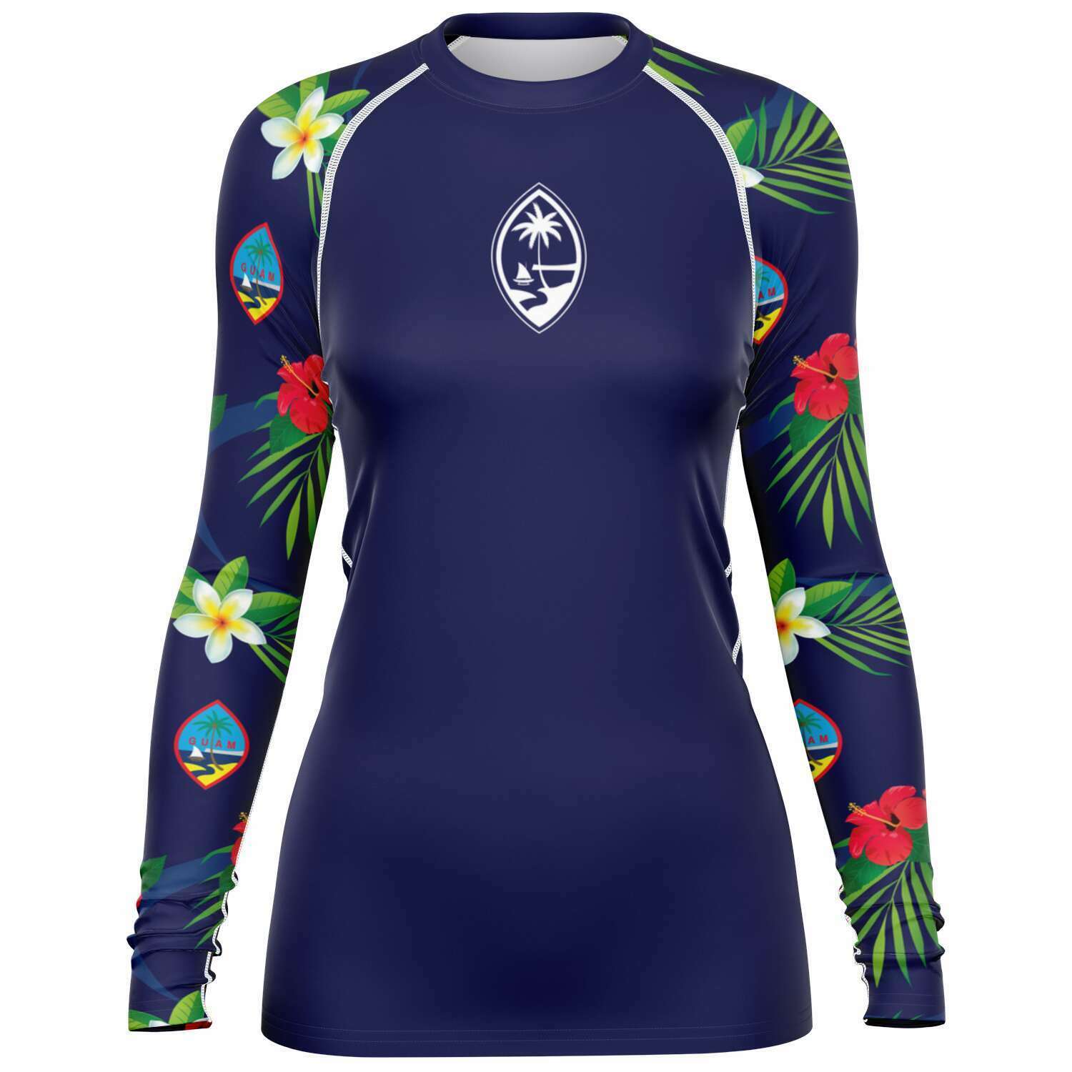 New!! Our Guam Flag Flowers rashguards feature our exclusively designed floral pattern on the sleeves. This long sleeve rashguard comes with built-in UV protection that keeps you guarded during all-day surf or swim sessions. Even with a snug fit, the stretch material offers complete movement.
