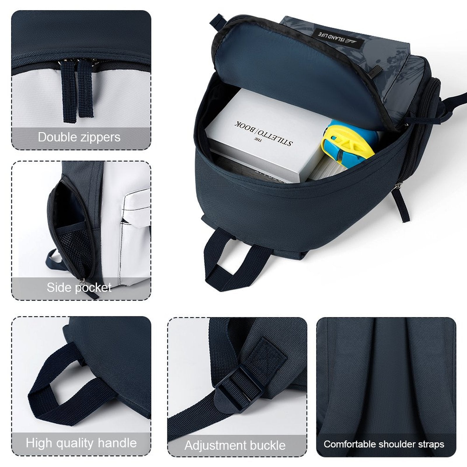 - Large storage space can be used to carry learning materials such as books, notebooks, folders, and loose-leaf binders.