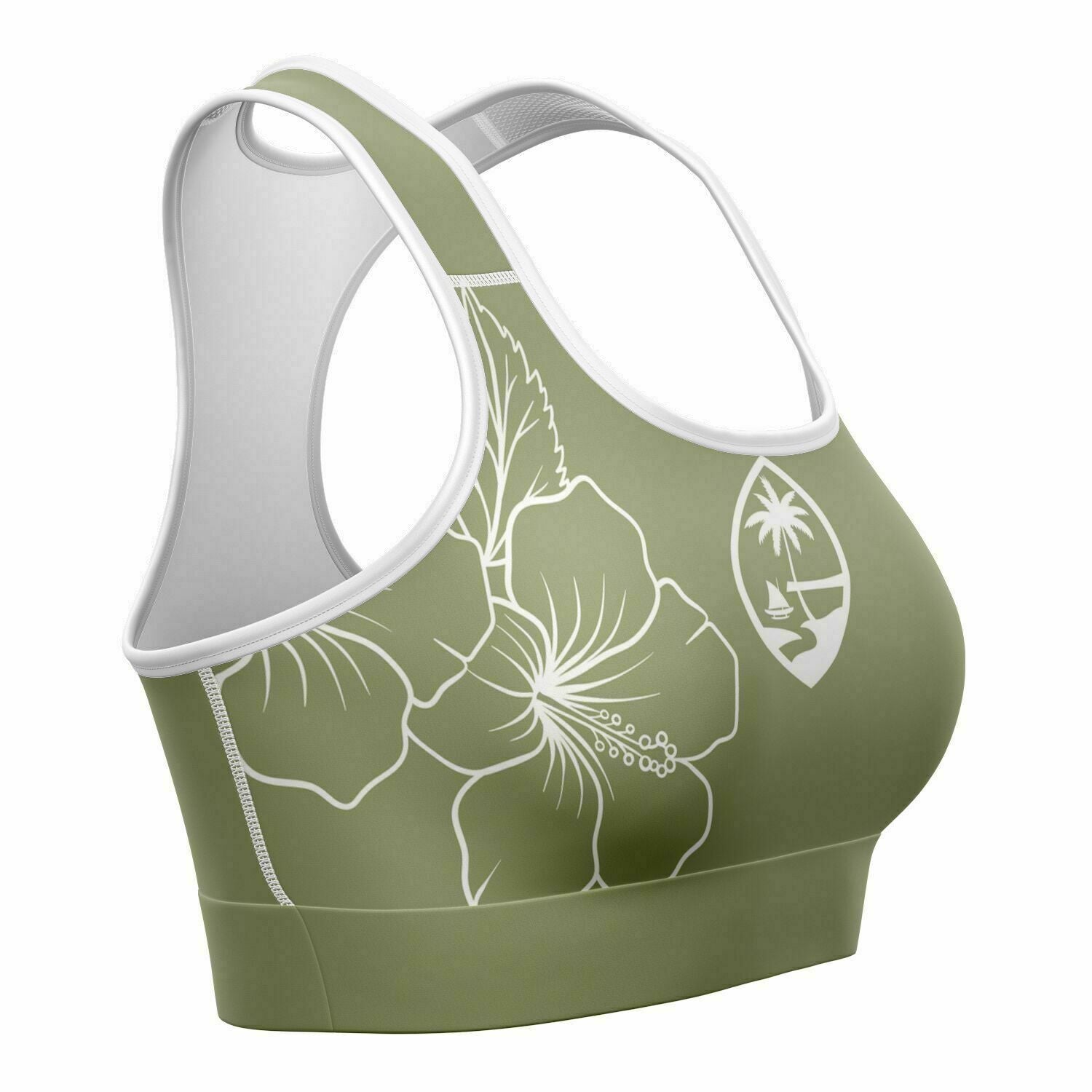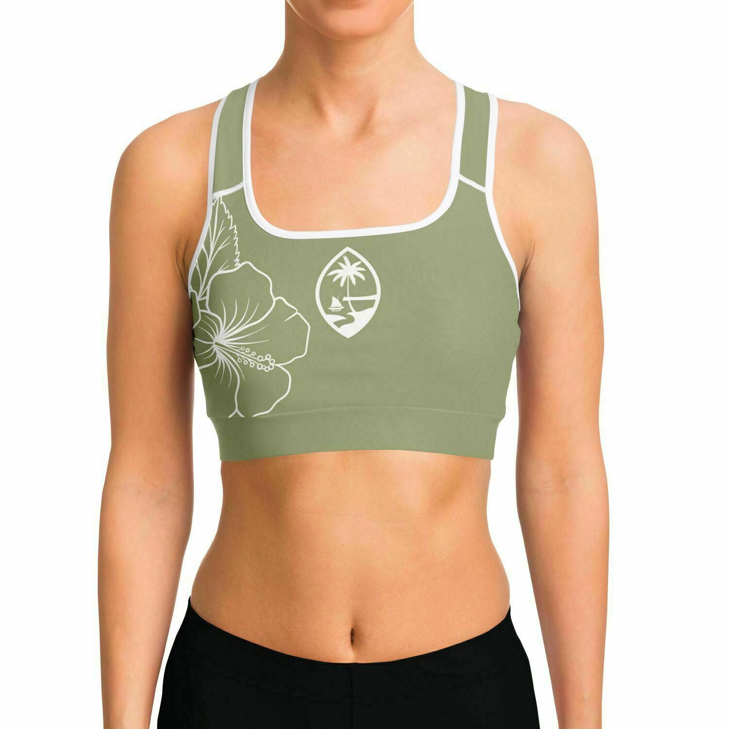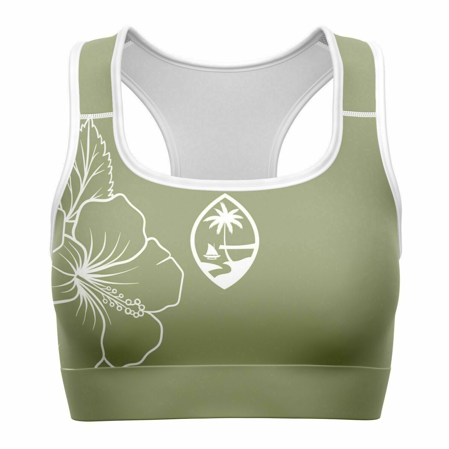Guam Green Modern Hibiscus Sports Bra