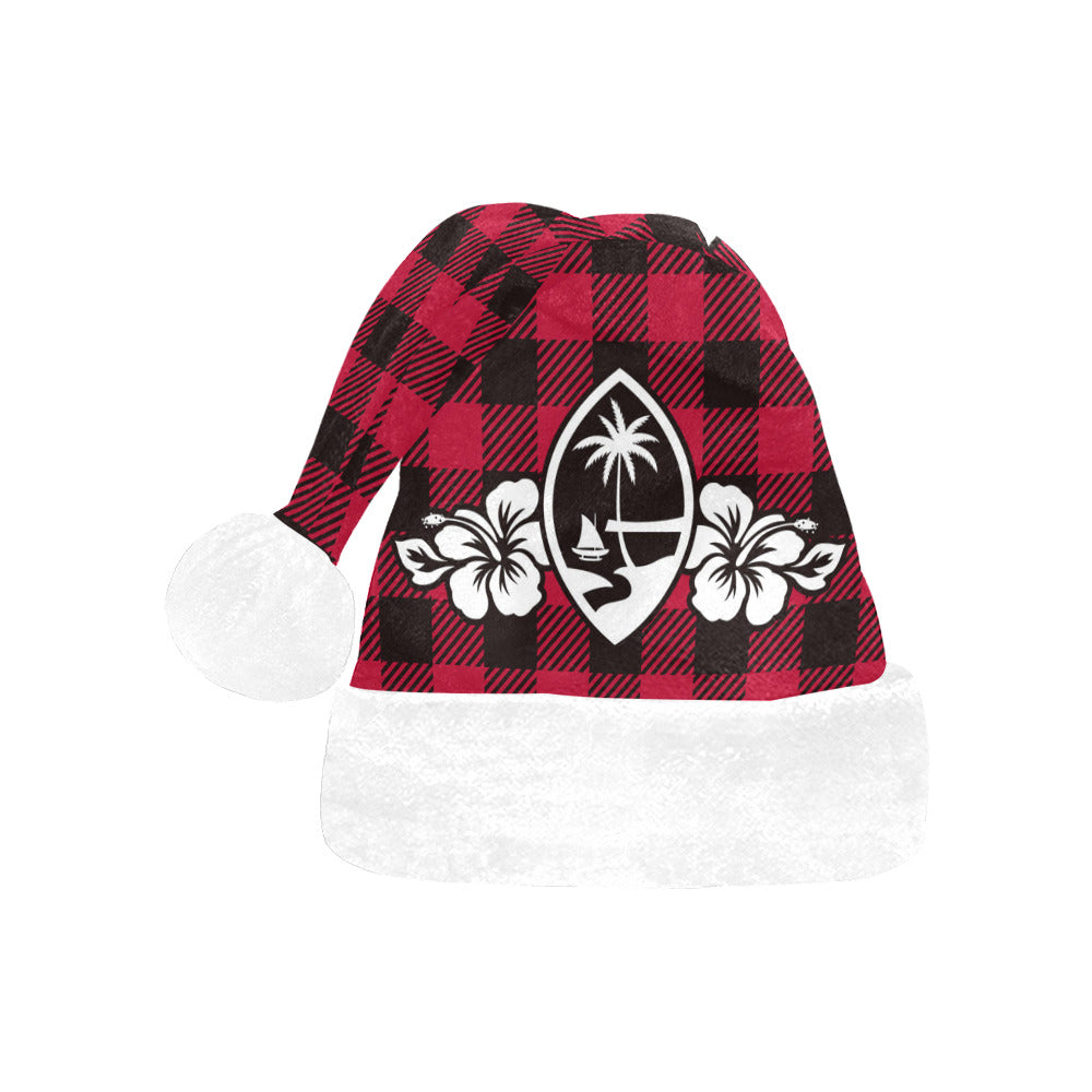 Guam Hibiscus Buffalo Plaid Santa Hat